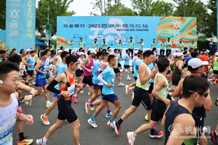 5月25日上午,2025西湖半程马拉松鸣枪起跑,5000名跑友从黄龙体育中心出发,穿越黄龙吐翠、断桥残雪、平湖秋月、南屏晚钟、雷峰夕照等著名景点,在奔跑中尽览“人间天堂”的湖光山色。