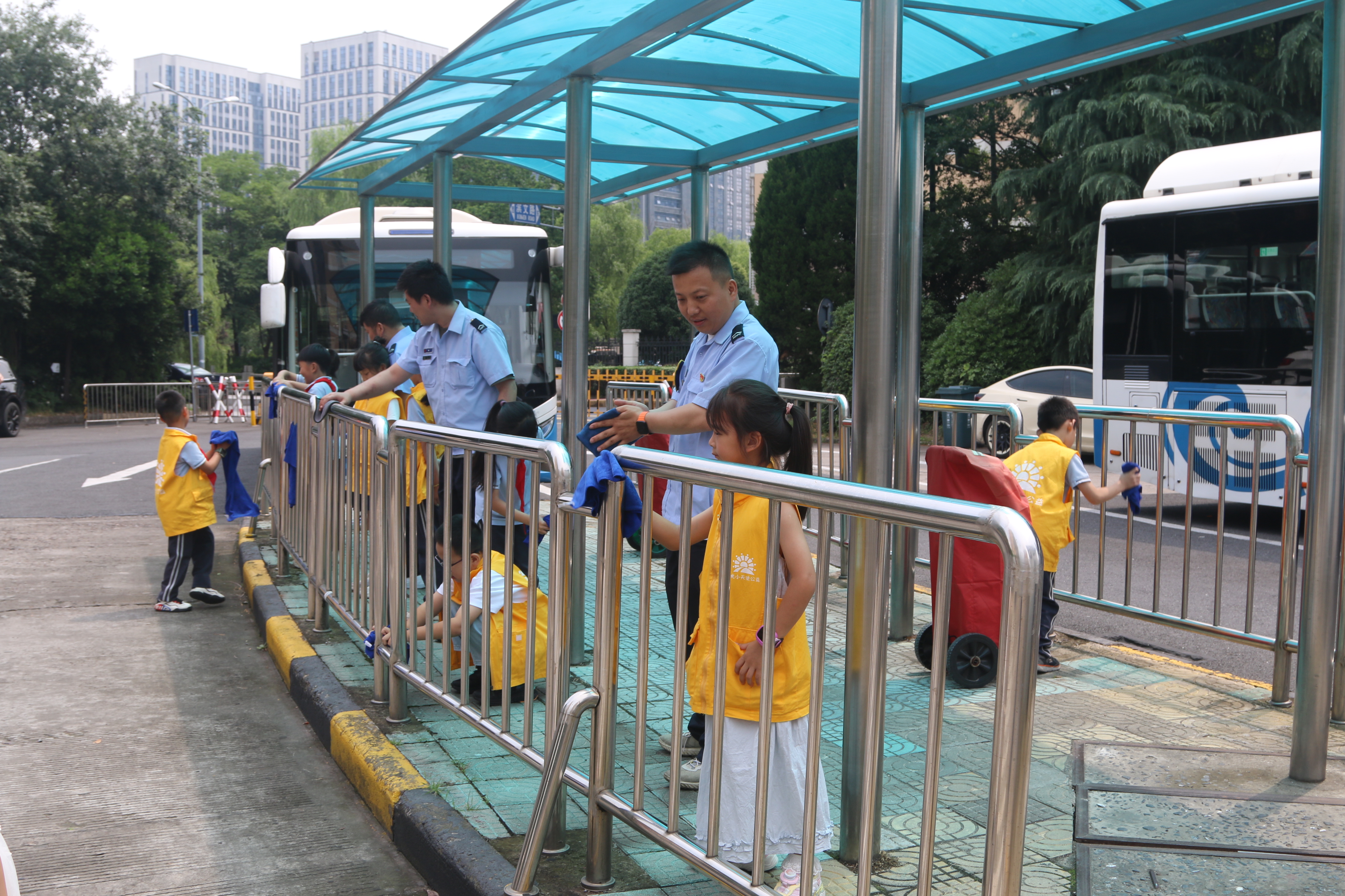 杭州公交集团劳模葛斌斌、翁以粮以“安全导师”身份全程参与。葛斌斌借此展开情景教学:“笑声可以有,但超过 80分贝就会变成‘噪音’哦。”随后,他结合车窗抛物模拟实验、车厢饮食残留物演示,详解文明乘车规范。翁以粮则通过灭火器实操、安全锤破窗模拟,教会孩子们“公交安全survival技能”。