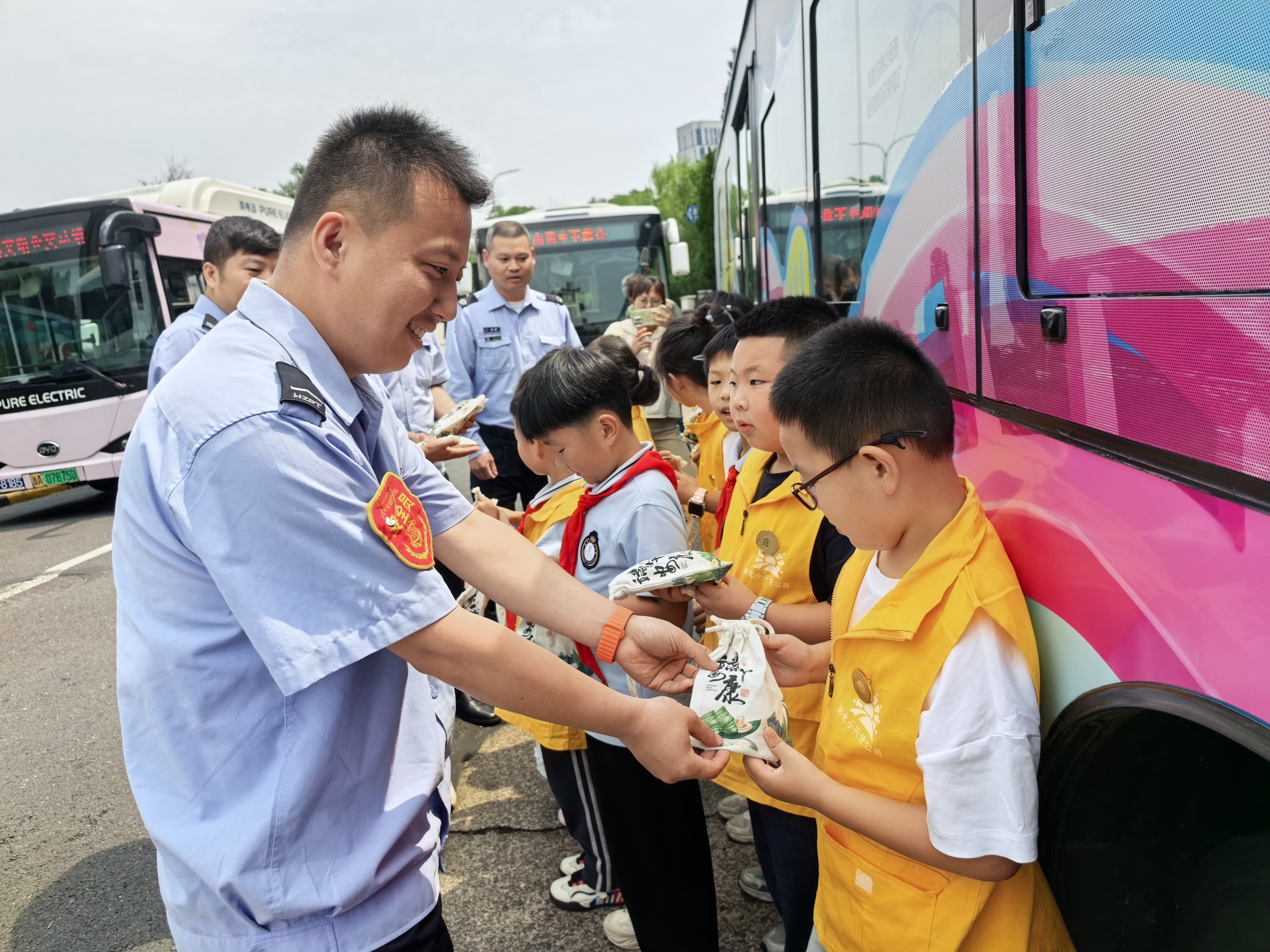 实践环节,学生们手持抹布与劳模司机共同清洁车厢与站台,并送上自制清凉礼包。“叔叔戴这个鼻息贴,开车就不会困啦!”稚嫩的关怀让现场暖意融融。双节将至,司机师傅回赠艾草香囊,邀请孩子们端午假期再乘“过山车”体验。