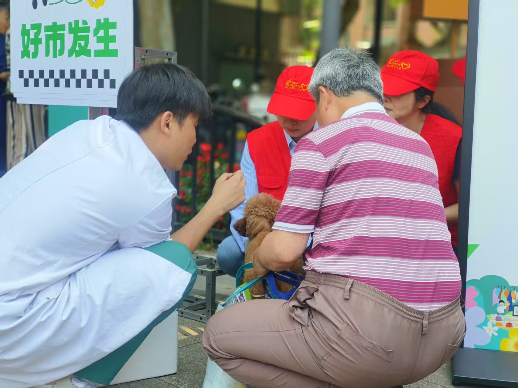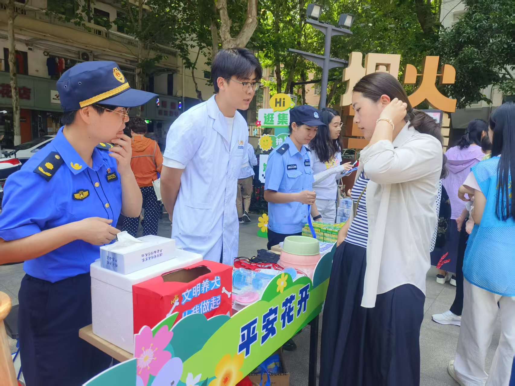 为引导广大居民养成依法依规,科学文明养宠好习惯,5月26日,杭州市综合行政执法队联合西湖区综合行政执法局、西溪街道,携手专业兽医团队,在马塍小广场的马塍花市共富市集,开展了一场文明养犬宣传暨“免疫+办证”一站式便民服务活动。