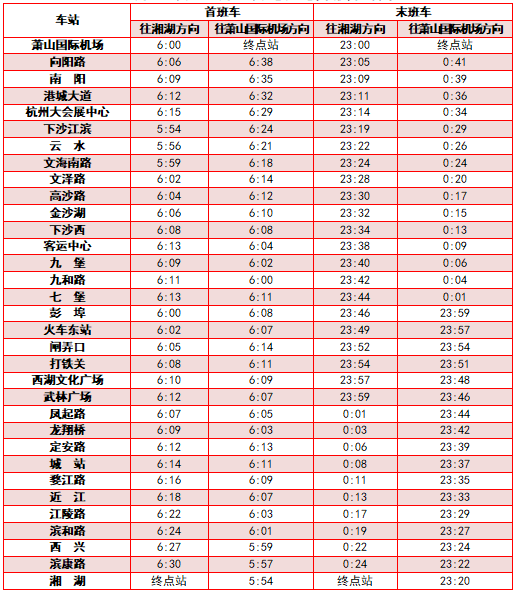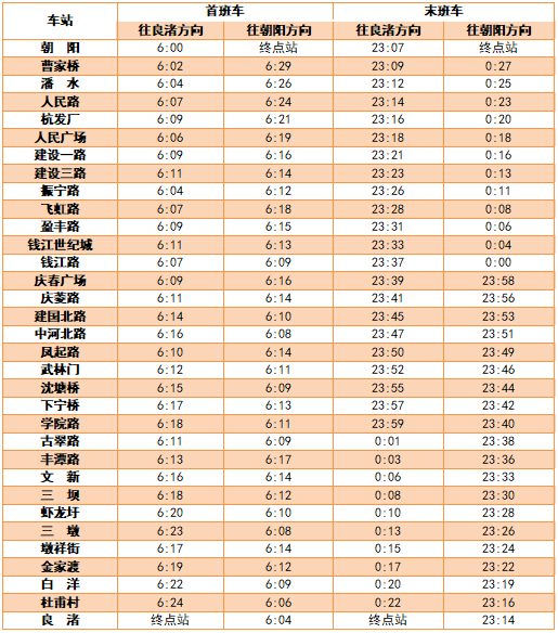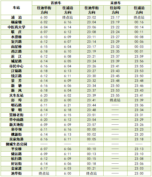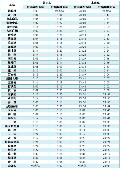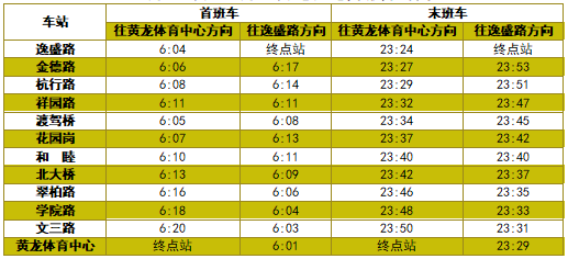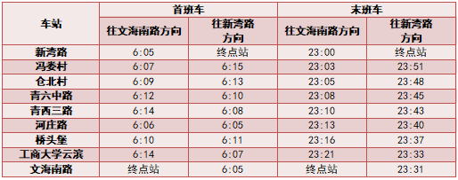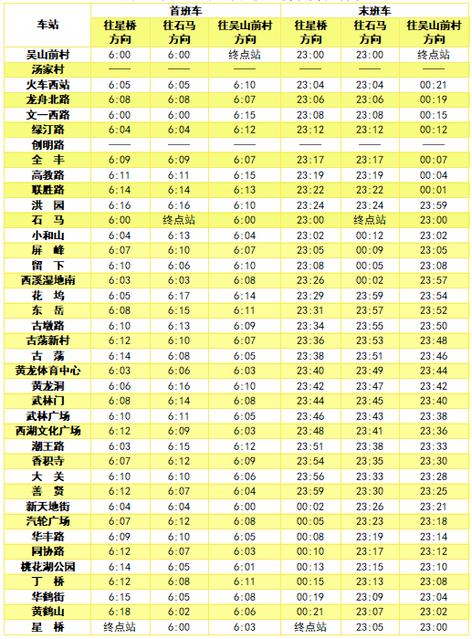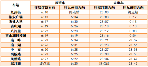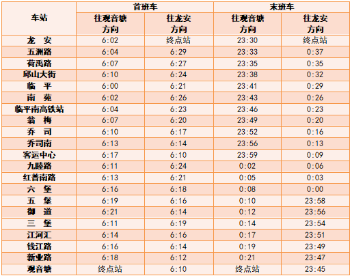 各线路首末班车时间表详见如下: