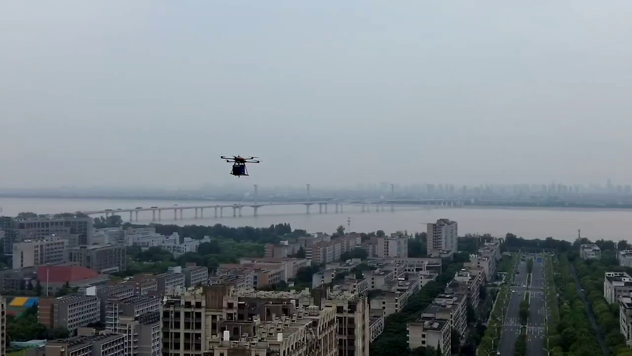 上午9点,蒲公英天地北广场响起螺旋桨的嗡鸣。两台通体黑橘色调的无人机从“空地一体综合服务站”升空,机腹悬挂着外卖配送箱,载着一批外卖向着下沙校区的学校飞去。这也意味着商业化运营的低空物流场景正式在钱塘拉开序幕。
