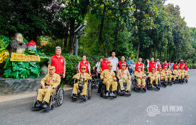 5月31日,杭州野生动物世界联合杭州富阳正步公益,举办“端午寄深情,共缅英雄魂”抗美援朝老兵致敬活动,21位功勋老兵在家人、志愿者及园区工作人员陪同下,度过温情满满的游园之旅。