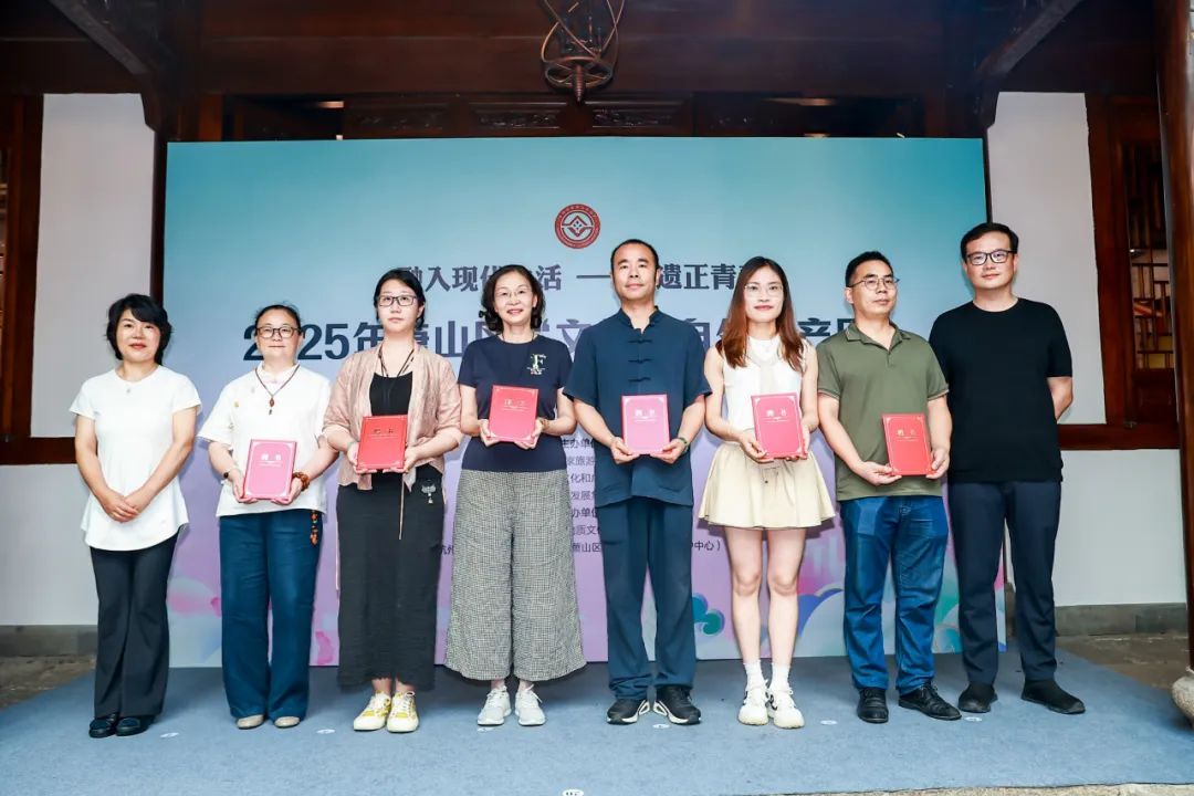 现场还为萧山非遗青年领衔项目颁发证书。越来越多的青年力量投身非遗传承,为古老的技艺带来了创新思维与年轻活力。本土网红萧山小朱作为项目代表发言,阐述了他对萧山非遗与新媒体融合发展的思考与探索。