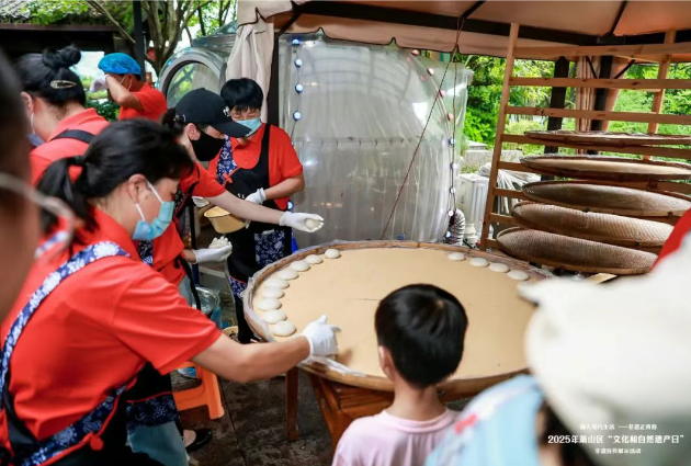 在“传统医药康养区”,庭院展架上汇聚了9家传统医药、民俗项目。戴村骨伤、韩氏中医内科等传承人为游客提供义诊,详细讲解中医药知识,让大家亲身感受传统医药的神奇魅力与深厚底蕴。“传统美食品鉴区”则是美食爱好者的天堂。闷清酒、蒸饺、蒸糕等萧山非遗美食香气四溢,令人垂涎欲滴。河上紫东麻糍节等特色项目,更是让游客参与到美食制作过程中,体验传统美食背后的文化内涵。“传统技艺展示区”展示萧山农民画、核雕等传统美术项目,以及河上竹制品制作、传统制香等11个传统技艺项目。非遗代表性传承人现场展示精湛技艺,与游客亲切互动,耐心传授制作技巧,让大家近距离领略到萧山传统技艺的独特魅力与匠心精神。