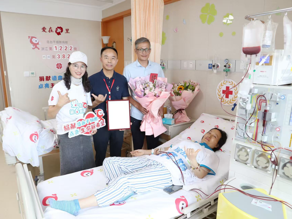 6月17日,张国英在杭州某医院成功完成了184毫升造血干细胞混悬液的采集,成为浙江省第1222例、杭州市第382例造血干细胞捐献者,为一位素未谋面的患者送去了生命的希望。