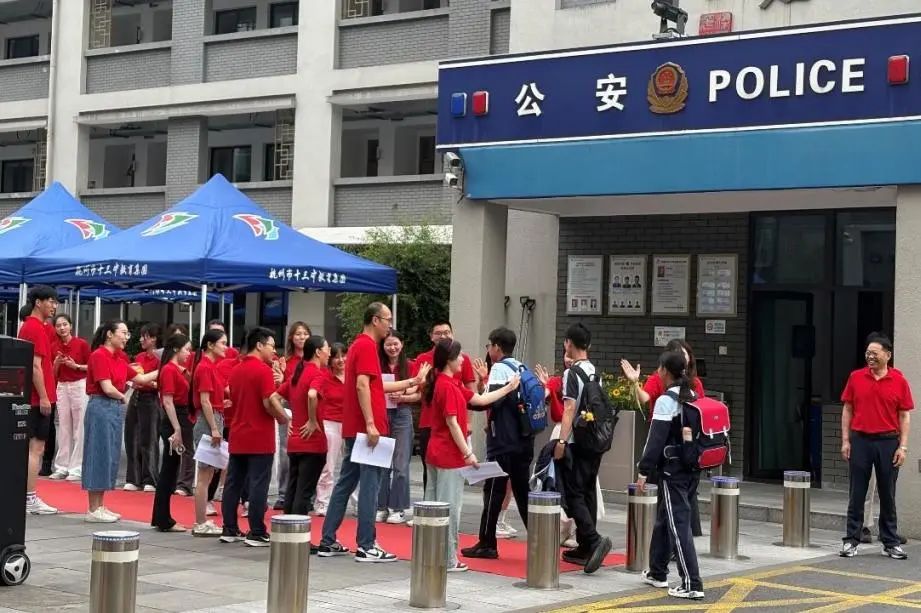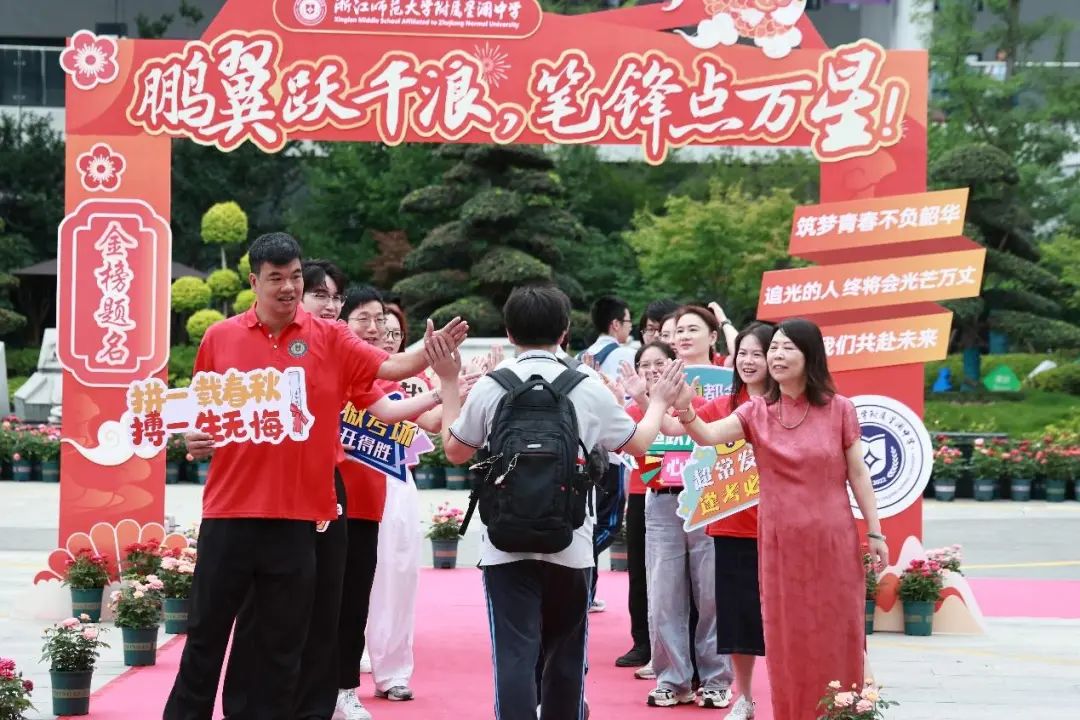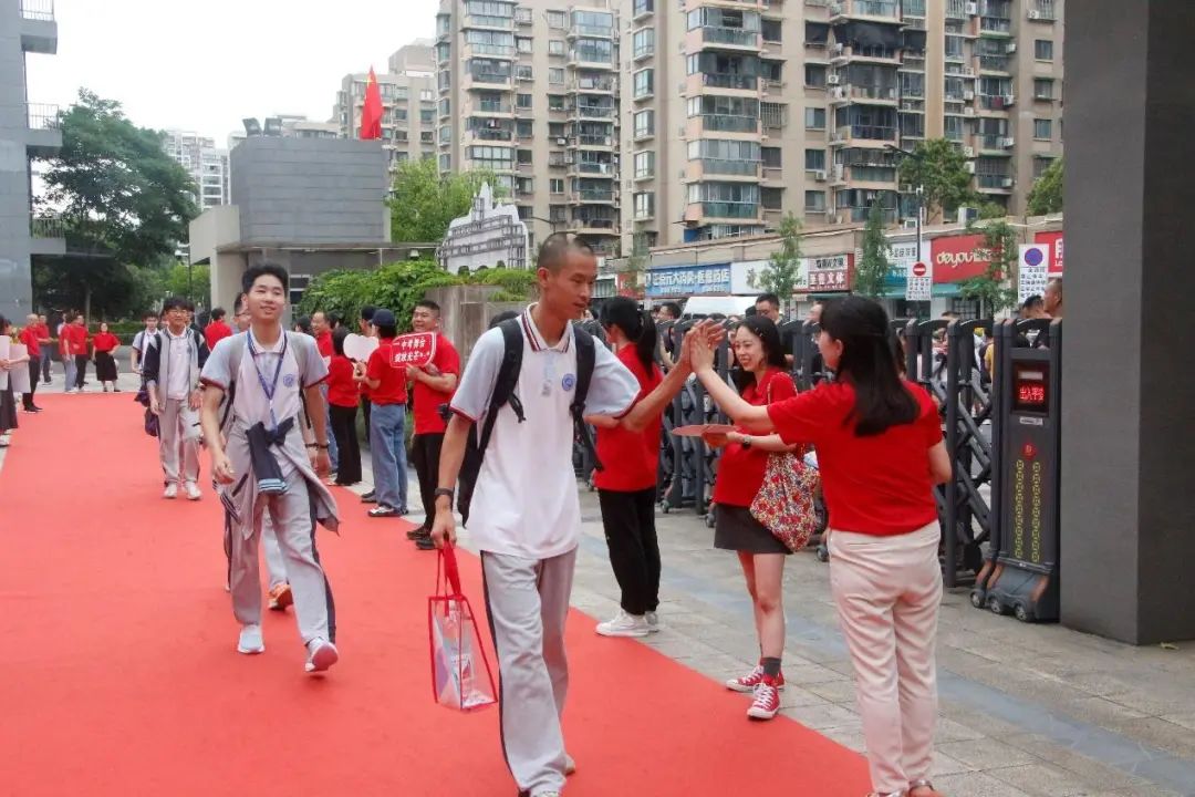 浙江师范大学附属星澜中学今年首次作为中考考点,一大早,老师们身着“开门红”,用最灿烂的笑容、最温暖的拥抱、最有力的击掌,为每一位奔赴考场学生注入信心与勇气。