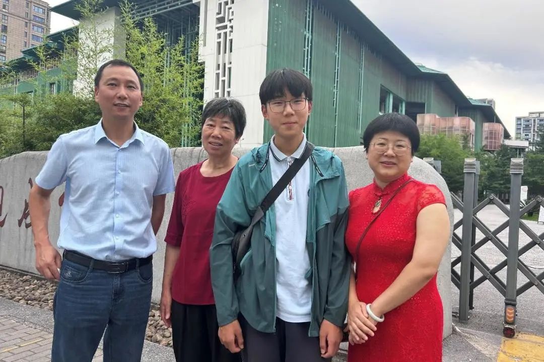 来送考的观成实验王同学一家,爸爸妈妈穿着定制的紫色送考服,11岁弟弟红色衣服上也印着“金榜题名”四个字。妈妈提到,特地准备这样几套衣服,是为了做好孩子的坚强后盾,让孩子有一个良好的考试状态。