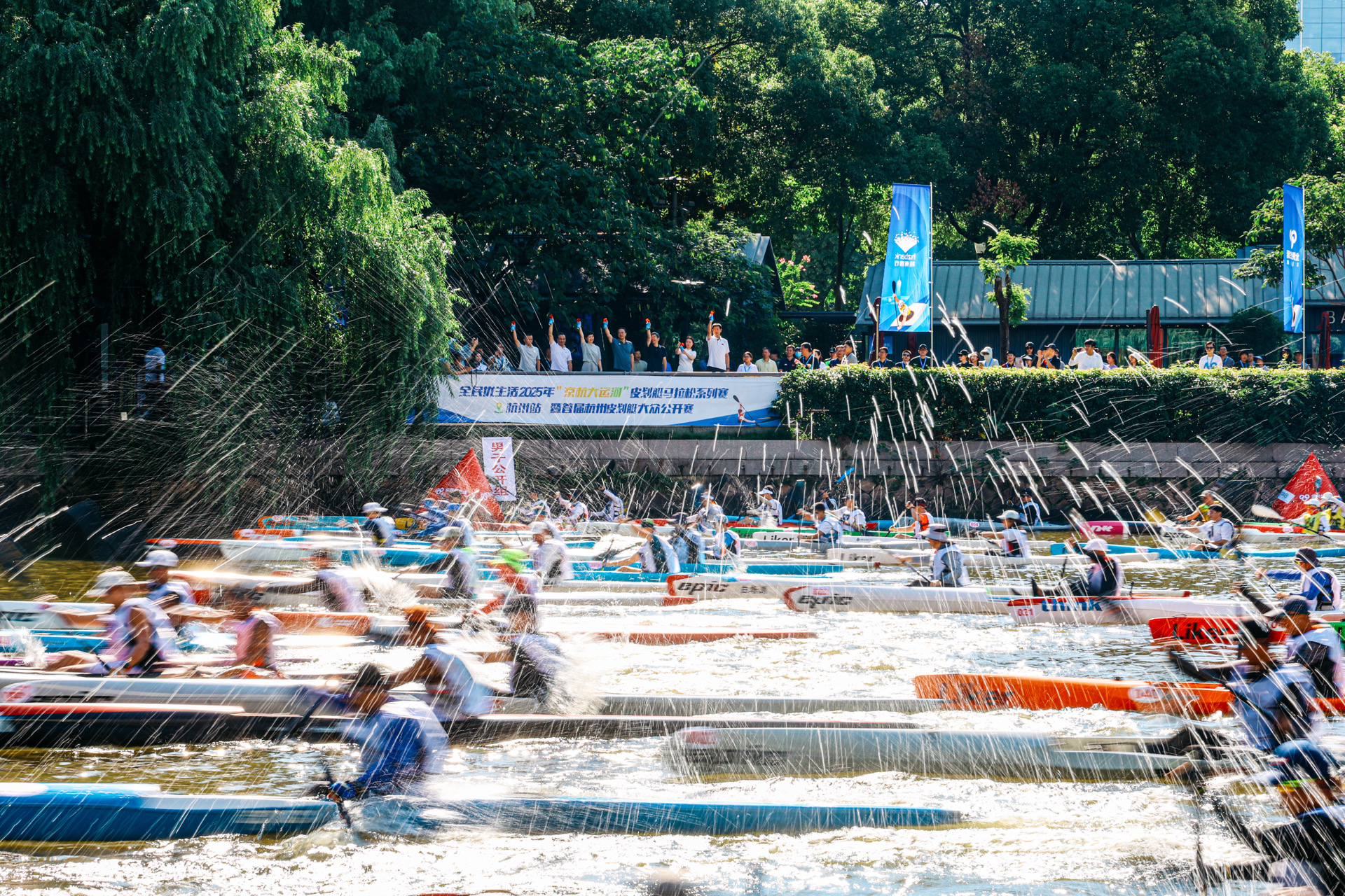 6月28日上午8点,全民优生活2025年“京杭大运河”皮划艇马拉松系列赛(杭州站)暨首届杭州皮划艇大众公开赛,在大运河武林门码头鸣笛开赛。赛事为期2天,来自全国各地近500名水上运动爱好者将在这里开启一场盛大的水上狂欢。