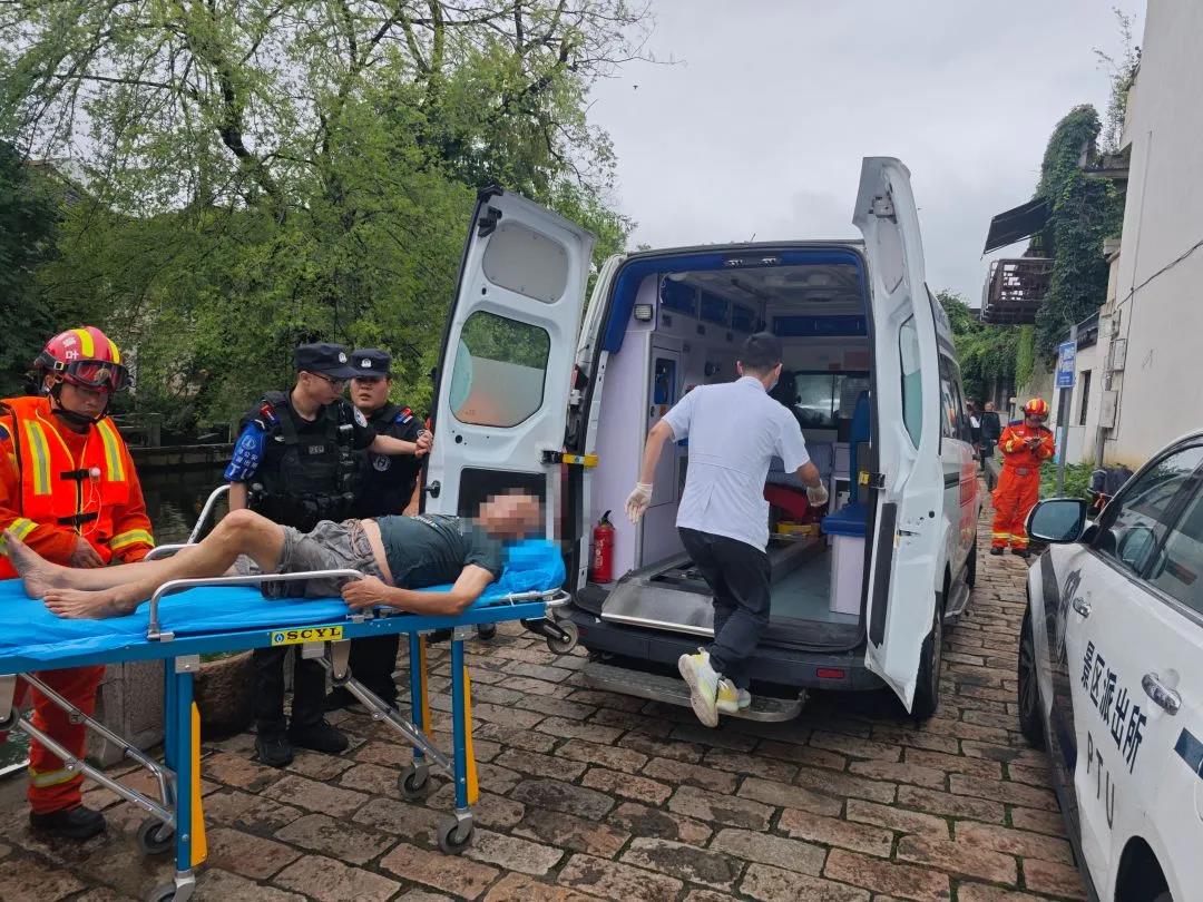 接到报警后,南浔区公安分局景区派出所,民警李海涛带队火速抵达现场,同步联系医护和消防力量一同前往。