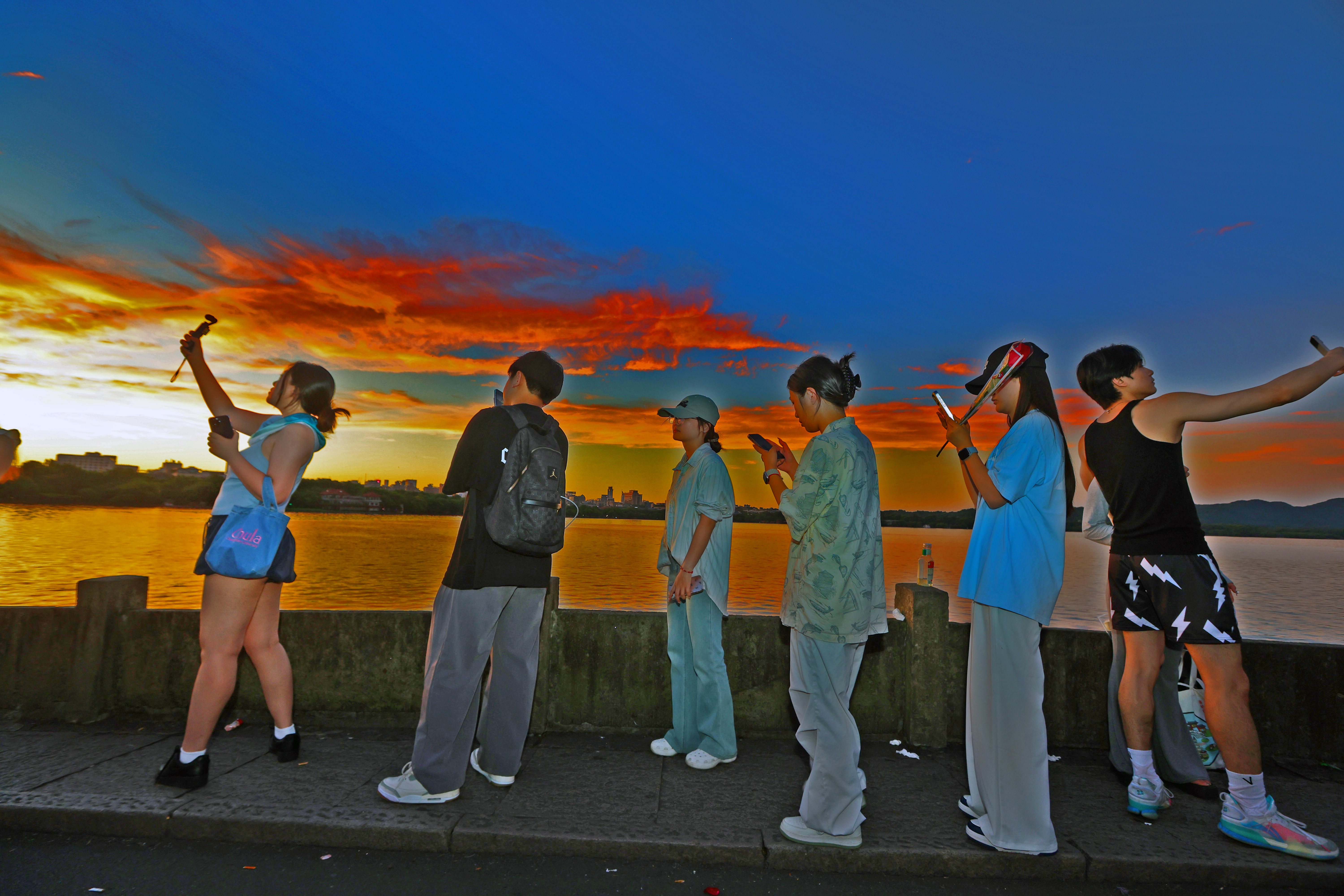 “朋友一再强调,这个季节游杭州,第一晚必须露宿断桥!性价比超高,体感奇妙:拍夜景、看荷花,拍日出,尤其太阳刚露脸,白堤就是最好的拍照舞台,光线柔和、背景美,特适合走秀拍照……”一位女孩跟记者滔滔不绝,“你们杭州人,如果不来体验下,真是白白浪费了这美景。”