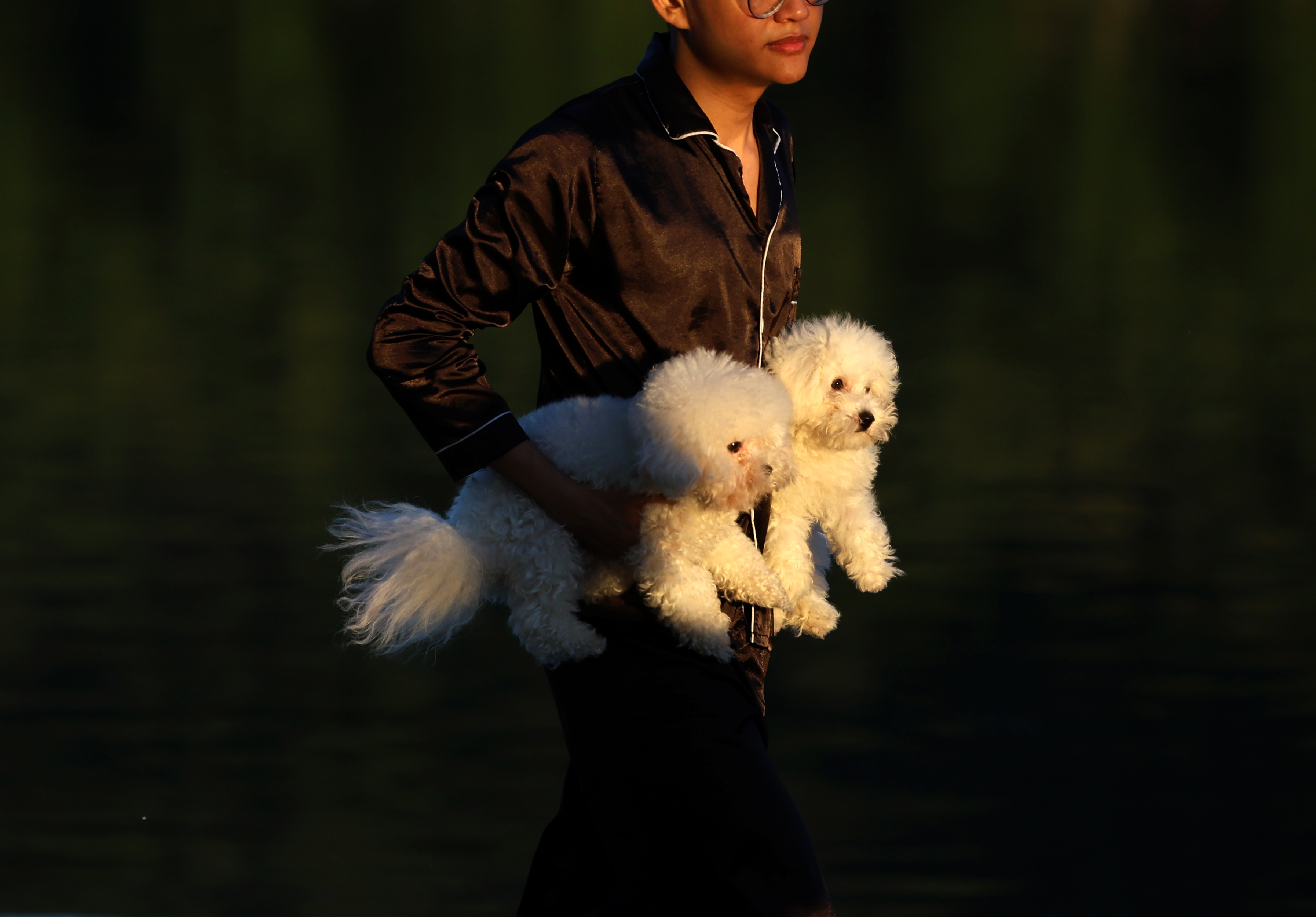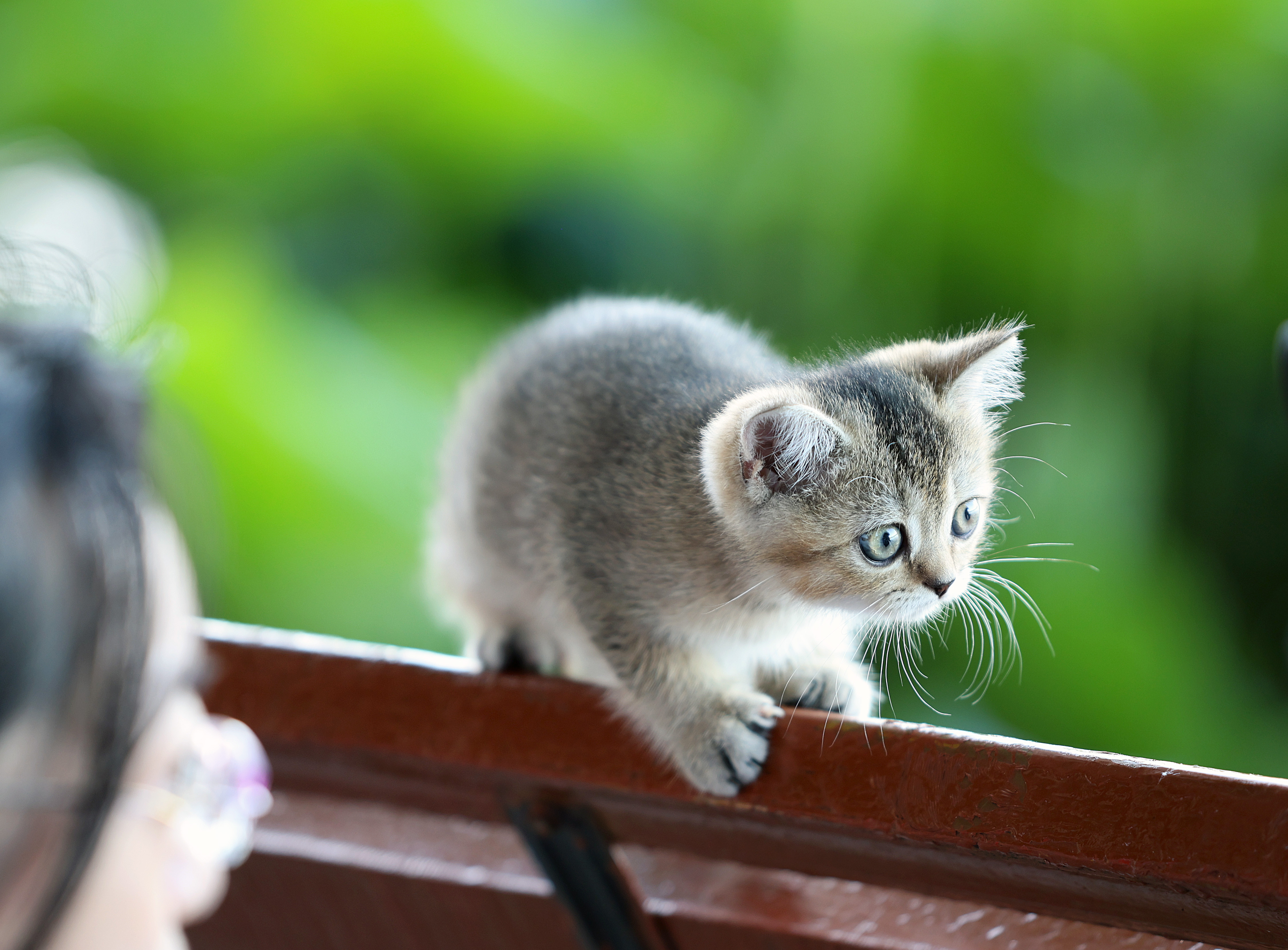 原来,它也是第一次来西湖看风景的。主人凌晨3点过,从湘湖附近,骑自行车15公里,耗时一个半小时,带它来西湖打卡。小家伙甚是聪明,时而躺在椅子上翻滚,时而爬上椅背好奇观望,遗憾,它喜欢的蝴蝶蜻蜓,此刻都玩起了躲猫猫。它的萌态倒是赚足了游客的眼球。小猫的主人是新杭州人,养猫有三四年了。听他说,自己也是看到朋友圈说,近段时间,早晨西湖的风景非常优美,就带着小猫来开开眼。