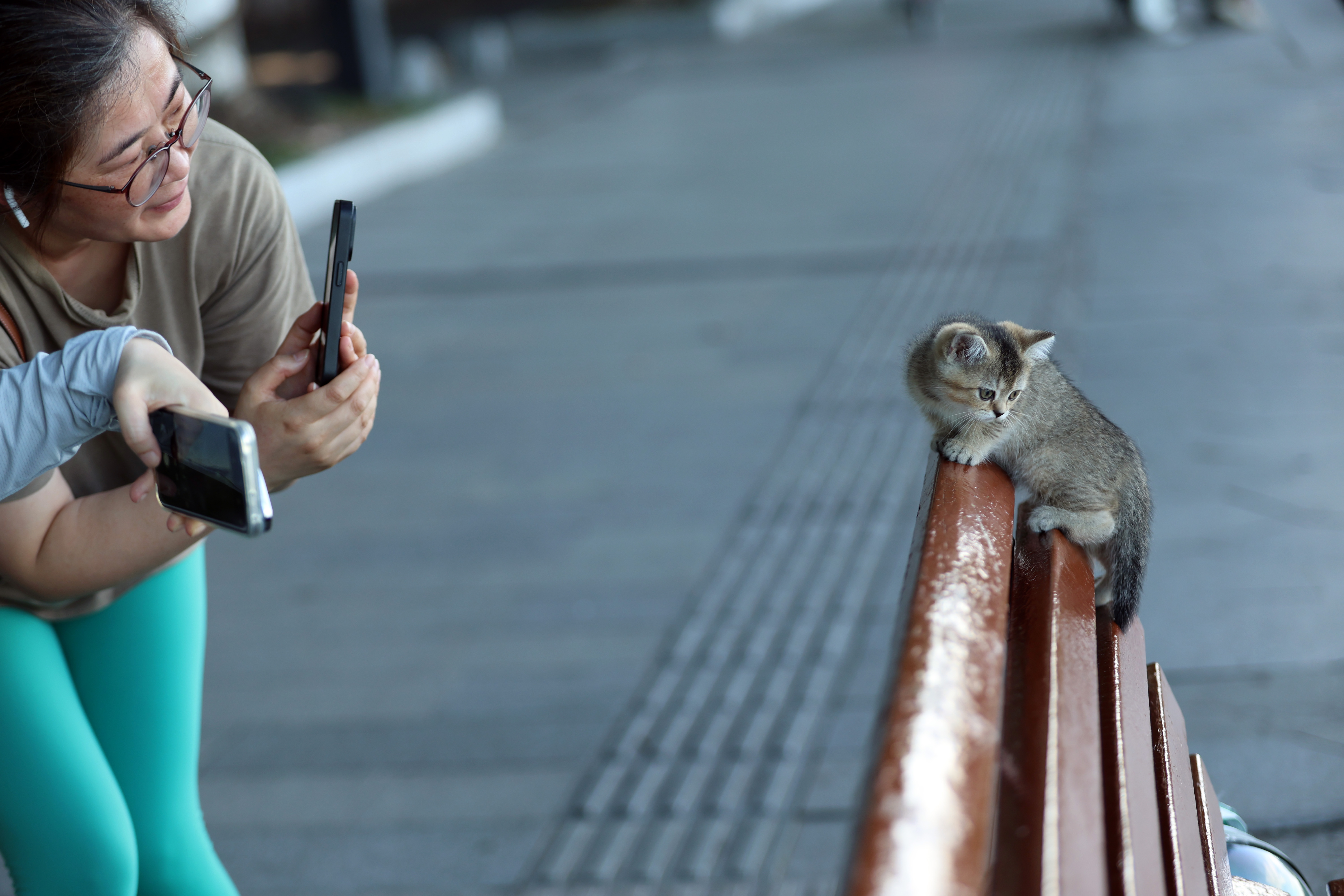 北山街正对断桥的一排凳子座无虚席,大家饶有兴趣欣赏着对面的风景。奇怪,一只长椅上空无一人,欲驻足小歇者靠近后,方知有主已占。占座者是一只出生54天的萌小猫。