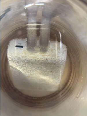 戴老师向记者解释,普通的食用盐泡水后,将充电宝放入其中,会释放出少量的氢气、氯气、盐酸等物质,有些网友发的图片上的黄色大抵就是氯气及其副反应产物溶于水的颜色,如金属铁生锈溶出的铁离子盐酸。“普通人家中自行处理一两个状态良密封性好的充电宝,问题不大。不过,需要注意的是,不能在卫生间等密闭的空间,最好是在通风性较好、空旷的室外,让产生的气体能够尽快吹散、稀释,且旁边没有易燃物,降低不可预知的风险。浸泡后剩下的黄色液体稀释后可以倒入生活污水管理,它的成分相当于氢氧化钠(烧碱、火碱)、自来水厂用于消毒的氯气和氯气与碱反应生成的次氯酸钠,也就是人们常用的84消毒液、洁厕灵等有效成分,浓度上或许还要低一点。需要提醒的是,建议处理者不要用手直接触碰废水,可以用筷子夹取充电宝或佩戴橡胶手套处理。”