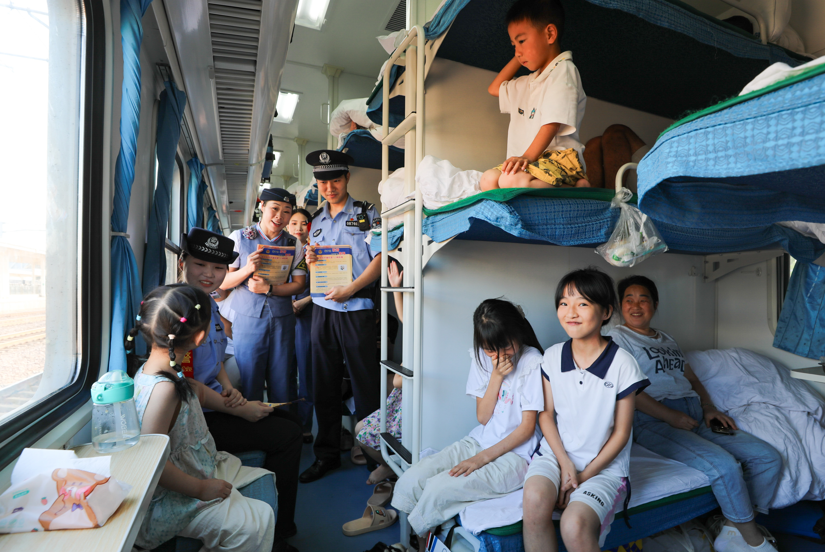 6日,杭州乘警支队联合爱心企业,在K1258次列车(成都西-温州)开展了“跨越三千里,共护‘小候鸟’,平安过暑假”特别活动,用细致的守护,让这份团聚的路更安心。