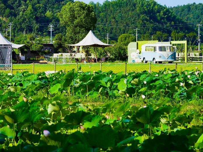 晨雾中的百亩荷塘,晶莹的露珠在荷叶上滚动,汉服姑娘撑着乌篷船穿行于盛放的荷花丛中,船桨划水声与岸边吉他声交织……这里,正是上山村蝶变的起点。