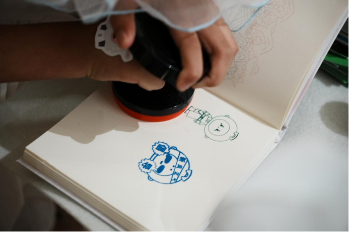 活字印刷非遗体验环节中,孩子们以《非遗故事》为线索,亲手体验挑选字模、排版、上墨、覆纸、滚压等流程。当带着独特墨香、字迹清晰的作品诞生,文化传承的魅力尽显,也让孩子们上了一堂生动的版权教育课。