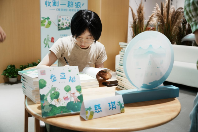 现场特邀著名儿童文学作家慈琪,她曾获冰心儿童文学奖、陈伯吹儿童文学奖等,作品《总也倒不了的老屋》入选全国小学语文教材,拥有广泛少儿读者基础。此次分享会围绕其新作《蚕豆狼》展开,设计了“植物+动物”组合确定身份、“故事种子盲盒”挑战、田野大冒险等互动环节,让孩子们在沉浸式体验中领略文学魅力,潜移默化理解角色塑造与情节编织的独创性价值。