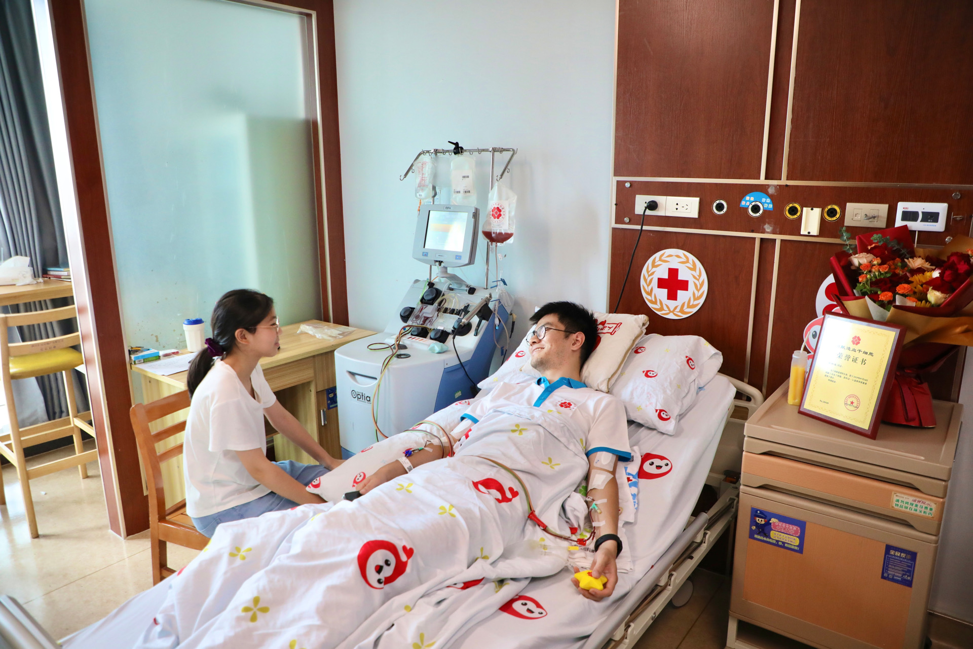 7月14日,在杭州某医院造血干细胞采集室,来自杭州建德的徐向成正在进行造血干细胞捐献采集。采集结束后,他的“生命之血”将被运往远方,为一位素昧平生的患者带去新生。