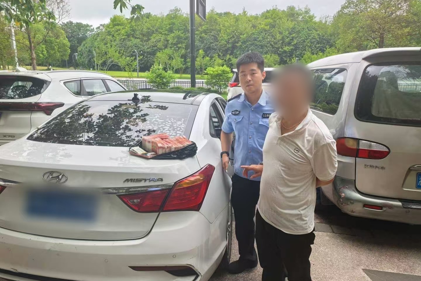 经过一个多小时的努力,民警许润泽和俞腾辉等人成功找到目标车辆,进而成功抓获犯罪嫌疑人吴某、吴某某,并在车上查获一部点钞机,以及散落的空快递盒和残留的胶带痕迹等物品。民警发现,钱再度被转移给“上家”。