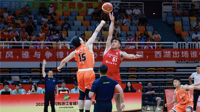 “不必千年等一回,西湖出场谁怕谁!”“球场称王,上城最强!”距离终场6分钟,当两队分差缩至2分时,穿粉、橘应援衫的两队球迷敲着“战鼓”对喊,活像两军对垒前的冲锋号。最后3分钟,上城队8号球员陈洋创下连拿10分的奇迹,看台上的呐喊声浪一度盖过现场解说员音量。