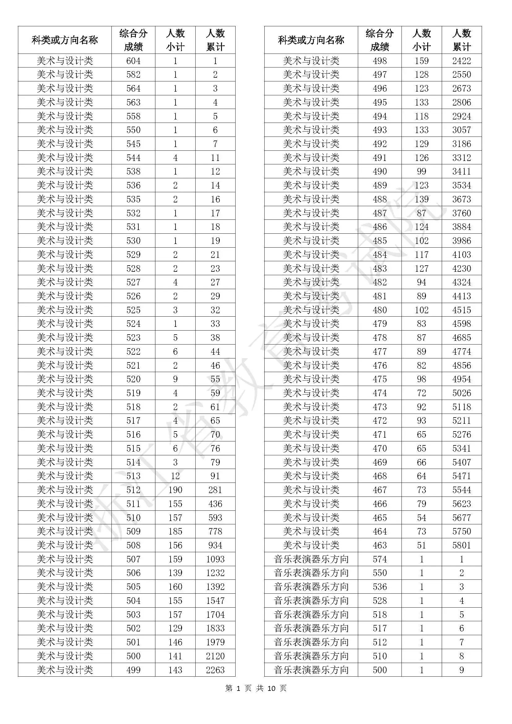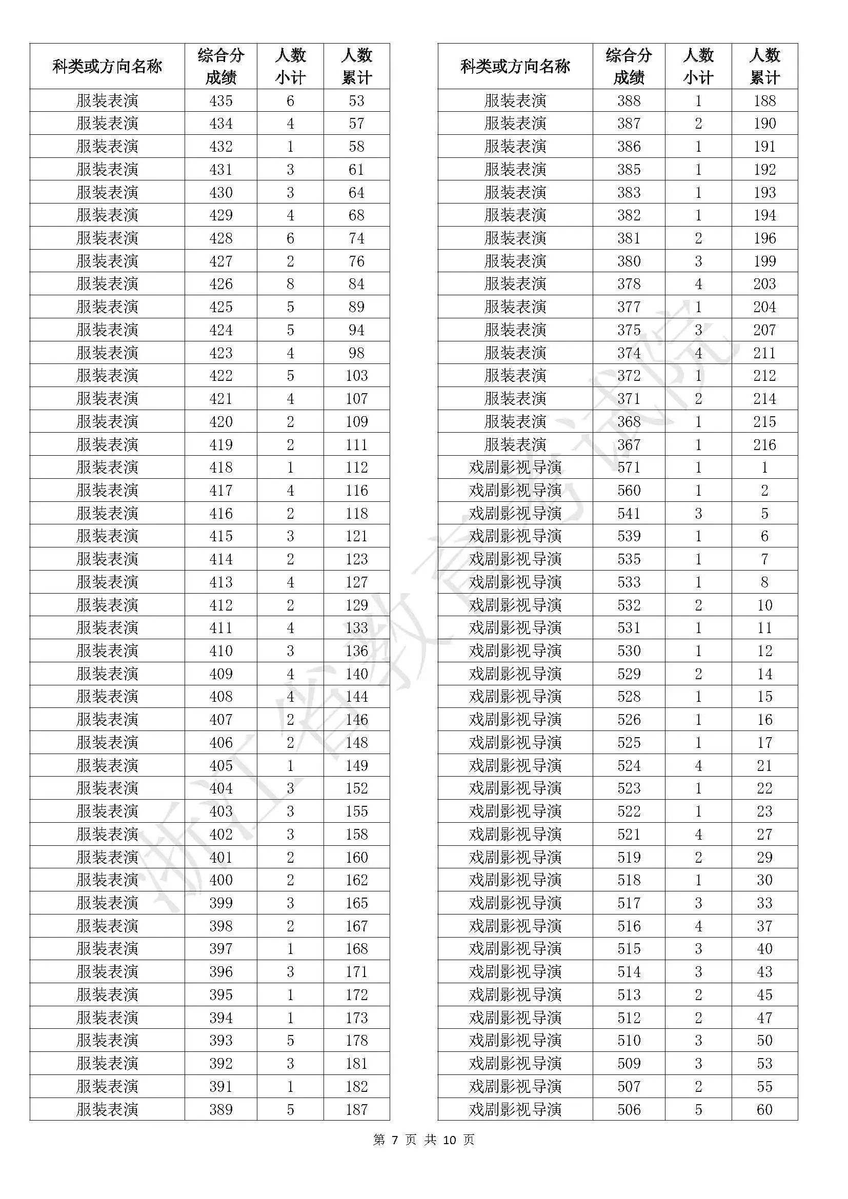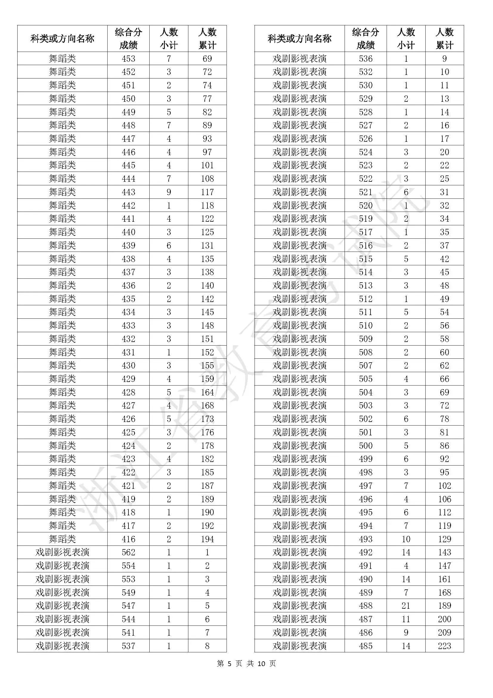 浙江省2025年普通高校招生艺术类二段线上考生综合分分段表