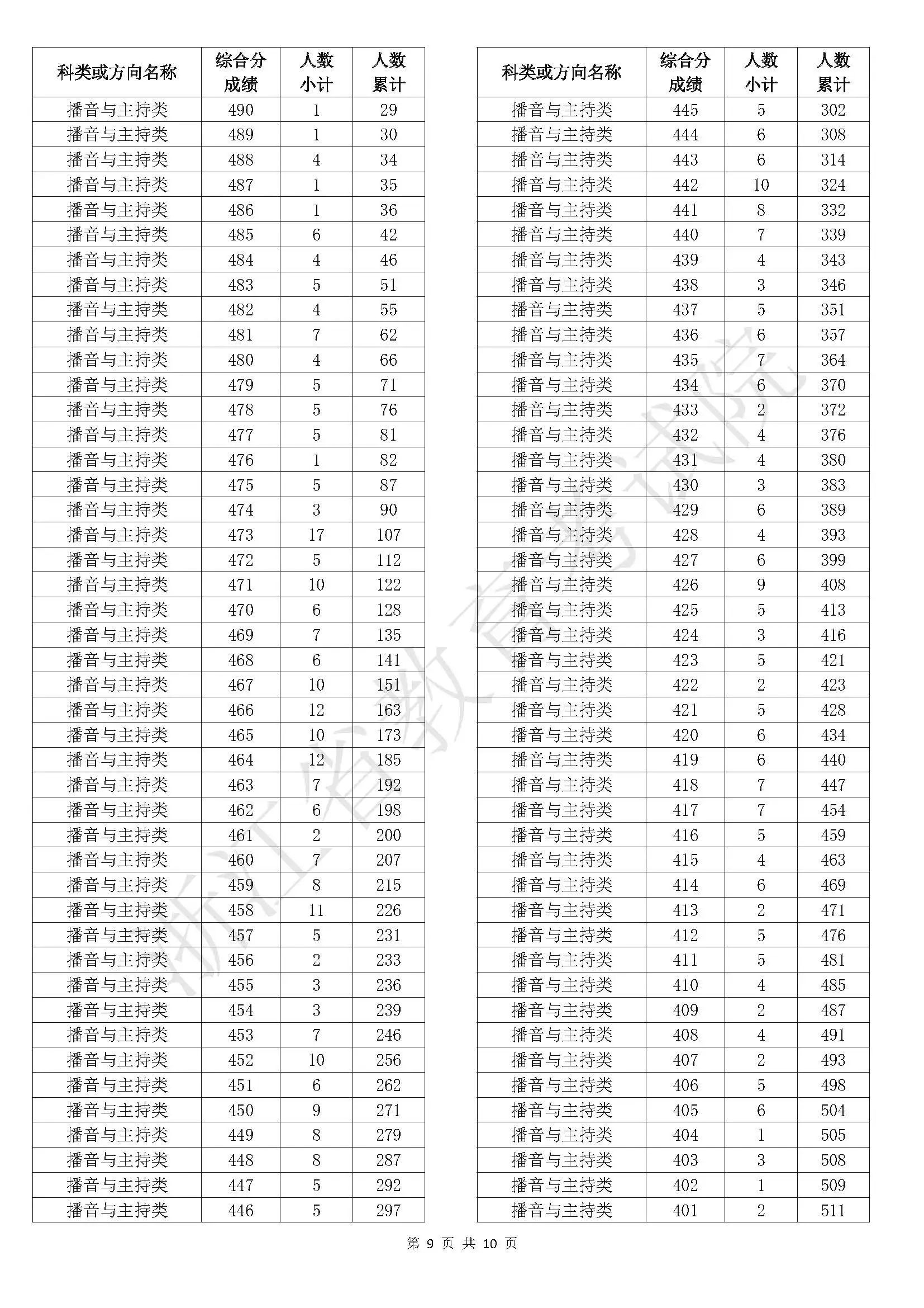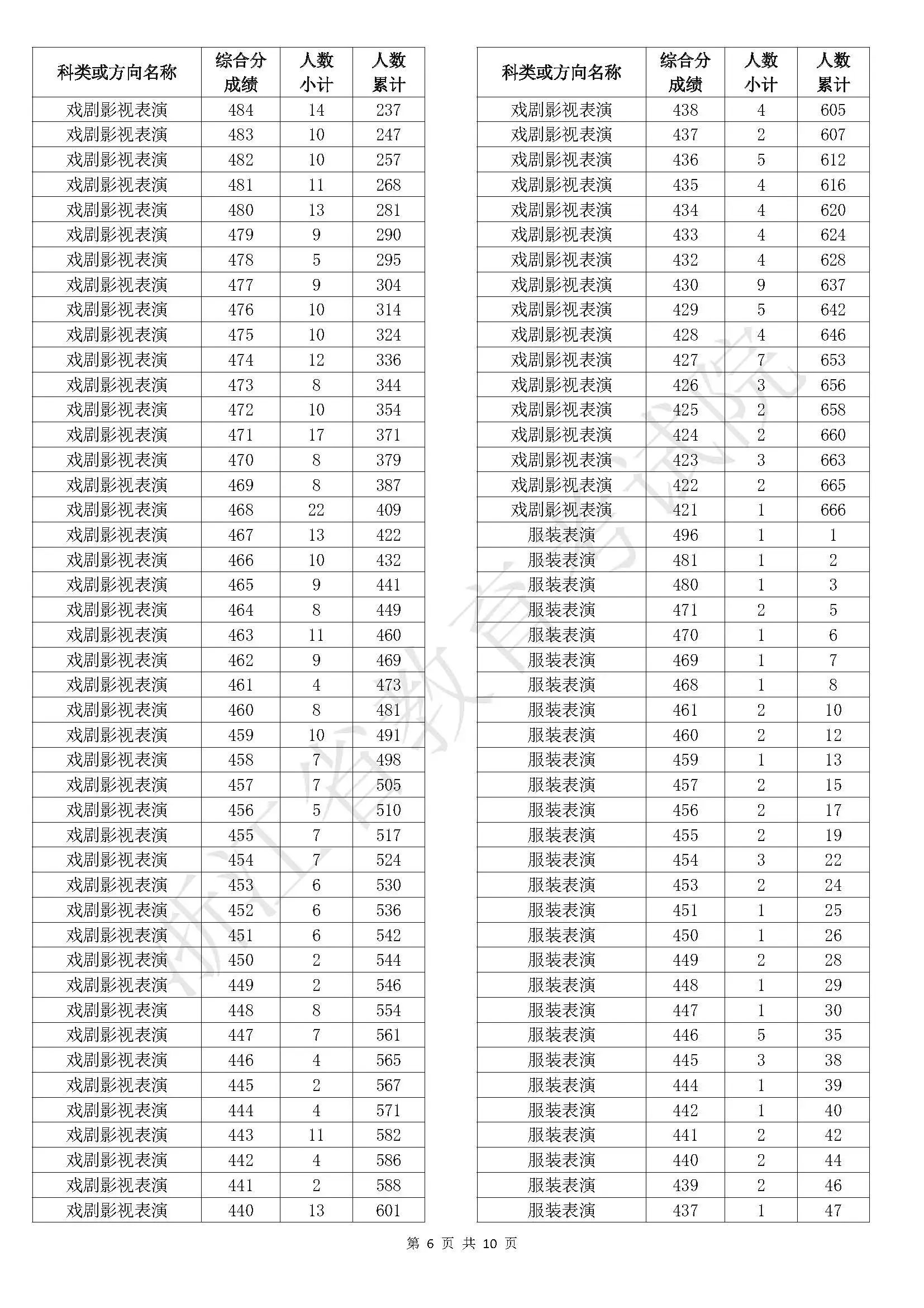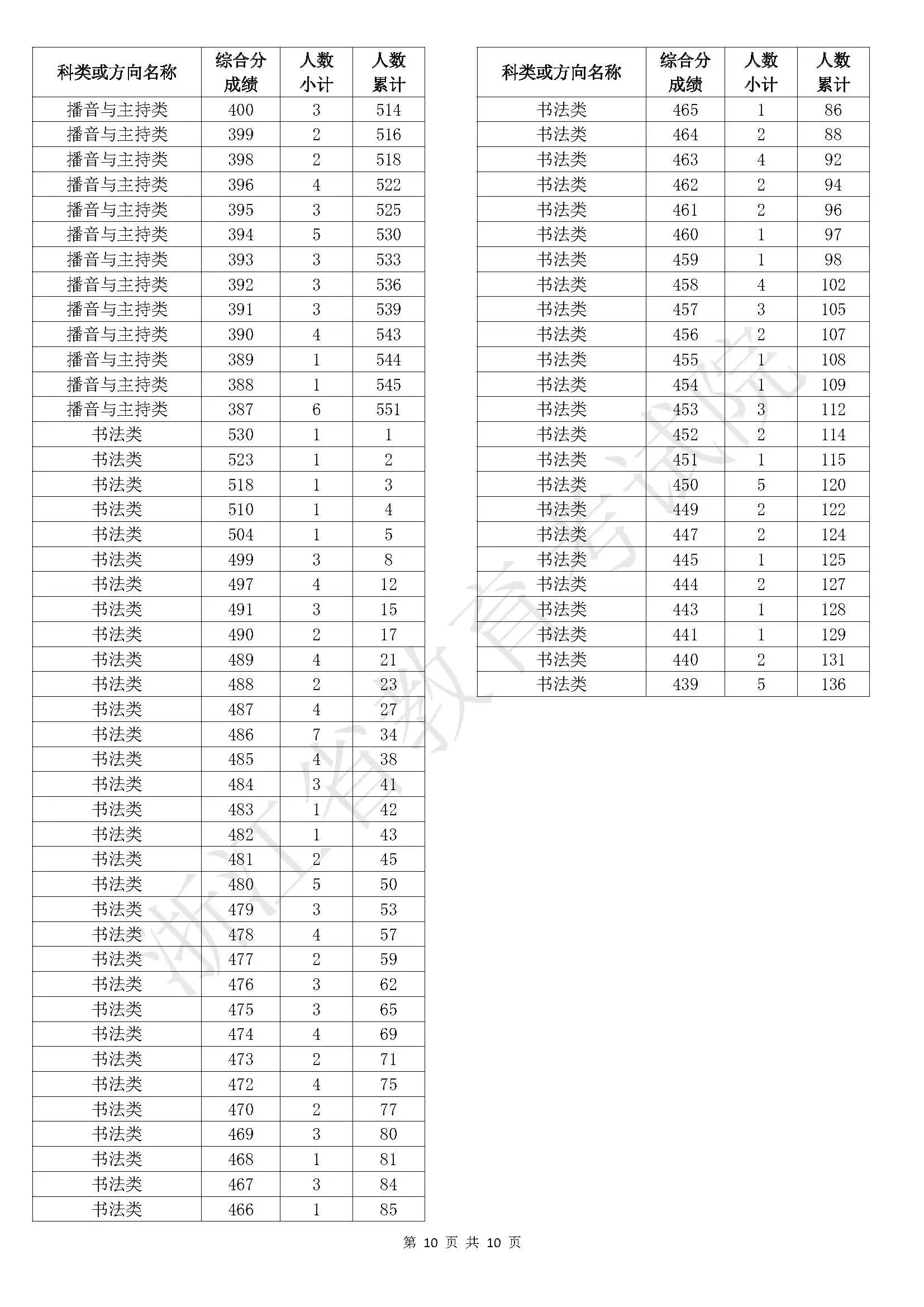 浙江省2025年普通高校招生艺术类二段线上考生综合分分段表
