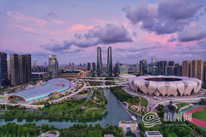 当时,受“范斯高”影响,杭城上空的云层在气流作用下变得层次丰富。一场如梦似幻的紫色晚霞如期而至,将天空装点得如同一幅绚丽的画卷,美得令人窒息。