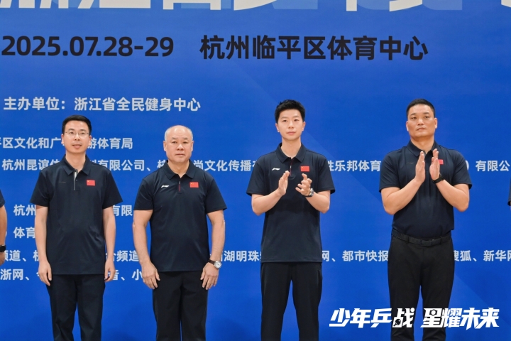 7月29日,2025浙江省青少年乒乓球联赛(浙北站)在杭州市临平区体育中心体育馆开幕。奥运冠军李宁和马龙作为重量级嘉宾出席了开幕式,并为比赛开球。