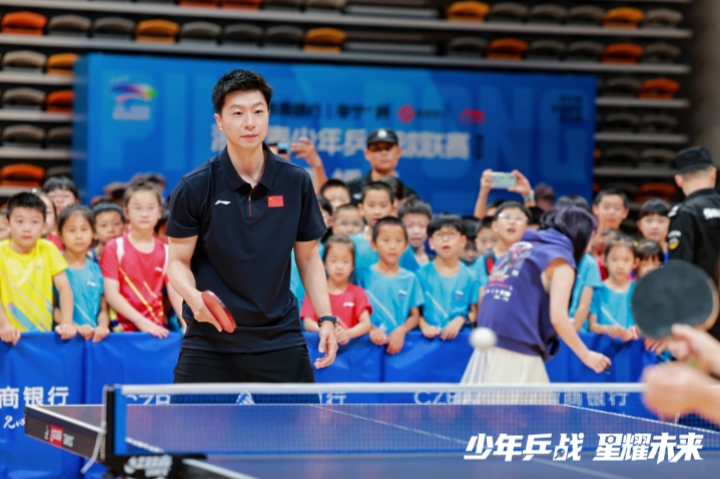 作为中国乒乓球的传奇人物,马龙的到场无疑成为了赛事最大的亮点。这位“六边形战士”担任开幕式开球嘉宾,与临平区小选手共同完成比赛“第一球”,为赛事注入了冠军精神。他说:“看到那么多小朋友热情洋溢、充满朝气地准备比赛,我想到了自己小时候参加比赛的样子。”