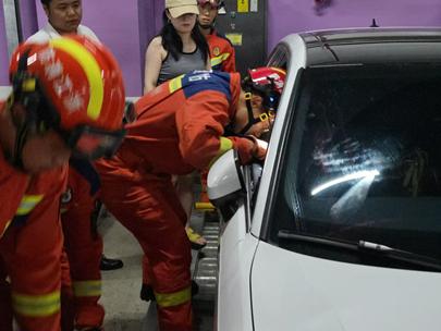 当日12时18分,萧山消防分指挥中心接到紧急报警:萧山区北干街道银河社区万象汇商场地下停车场内,一名幼童被意外反锁在私家车内。午间烈日当空,即便在地下停车场,密闭车厢内的温度也在急剧攀升,孩子的安危牵动人心。市北消防救援站迅速出动,消防员们抵达现场后发现,被困幼童已在闷热环境中出现不适,哭闹不止。情况紧急,在征得家长同意后,救援人员果断使用专业工具,精准选择远离儿童的车窗位置进行破拆,动作迅速而稳妥,很快便将孩子从车内安全抱出。因救援及时,孩子除受到惊吓外,身体并无大碍,家长悬着的心终于放下。