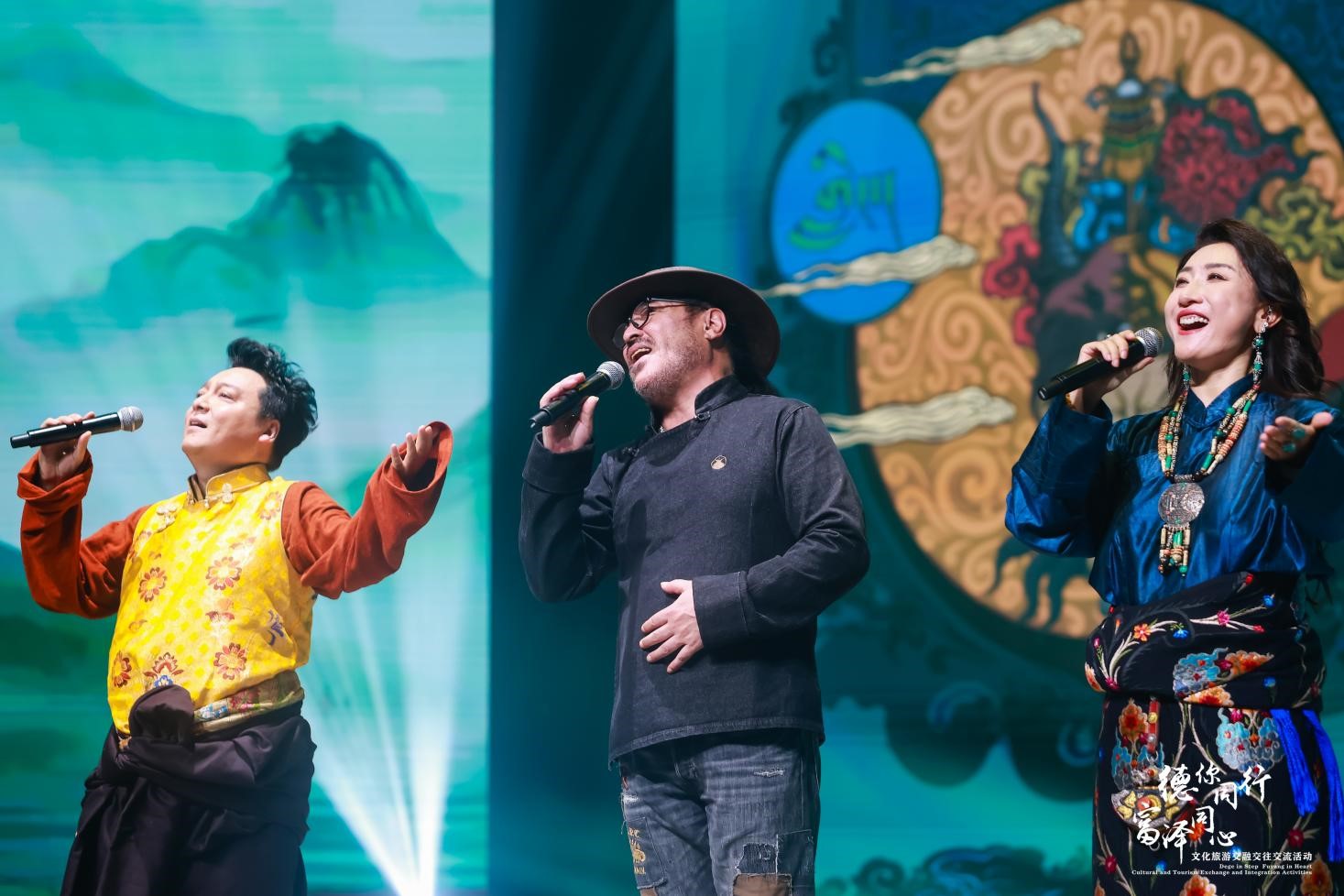 剧目结束后,藏族歌手为大家倾情献唱,将氛围推向了高潮。《名城德格》《故乡麦宿》《神子觉如》《卓玛》等民族乐曲,唱出了歌手们对家乡的自豪。在大家的深情合唱中,本次演出也落下了帷幕。