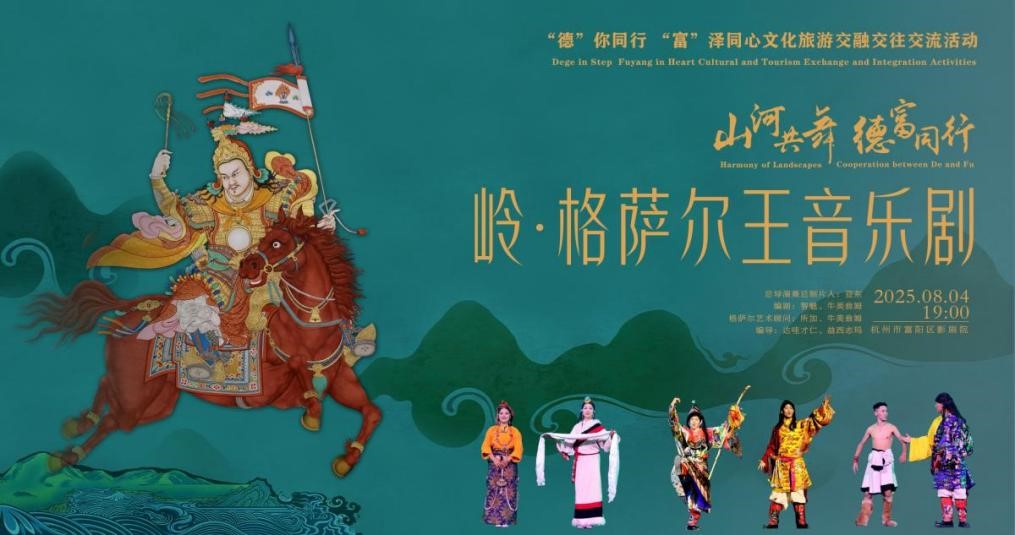 8月4日晚,富阳影剧院内锣鼓震天,旌旗猎猎,一场融合家国豪情与青春锐气的文艺演出在此上演。岭·格萨尔王音乐剧作为“德你同行,富泽同心”文化旅游交流活动的收官之作,为本次惠民演出画上了恢宏的句点。
