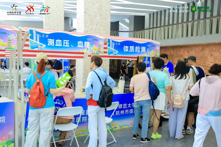 8月8日的主会场内,一幕幕全民健身盛景轮番上演,各区(县、市)的优秀健身项目展演体现了全民运动风采,全民健身项目互动教学的八段锦、排舞、健身操等课程人气高涨,晚上还将举行“燃脂狂欢夜”,进行尊巴、搏击操等潮流课程,让市民跟着节奏挥洒汗水,持续提升运动热情。同时,杭州师范大学附属医院(杭州市体育医院)设立专属服务区域,为市民提供义诊:运动指导、体质检测以及运动康复的一对一咨询,专业医师现场给出恢复建议与训练调整方案,累计服务近千人次,实现健身与健康管理的无缝衔接。