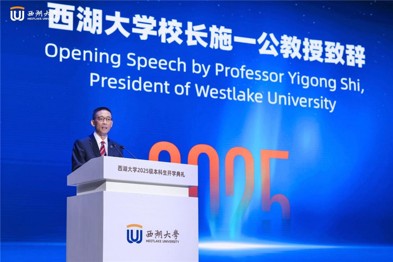 “在西湖大学,我们拒绝内卷和内耗,不以学分绩点、论文数量论英雄,在课程选择、专业方向上给予同学们极大的自由度和试错空间,鼓励每个人发出自己的声音,表达自己的观点,敢于做与众不同的少数派。”8月10日上午,在西湖大学2025级本科新生开学典礼上,校长施一公教授向第四届本科生阐述了学校的教育理念。在热烈掌声中,这些学子将正式开启在这所“高起点、小而精、研究型”新型高等学校的学习生涯。