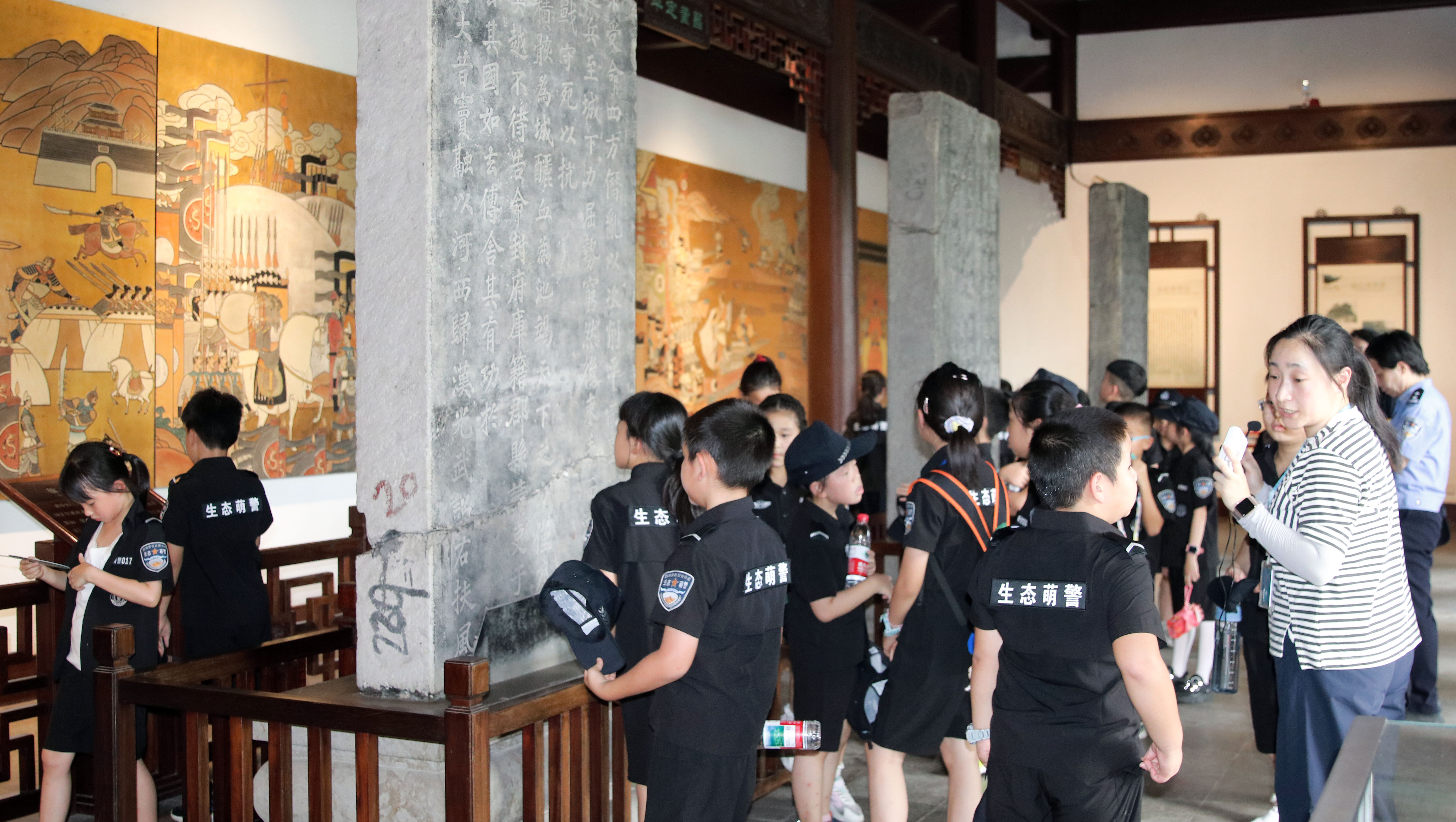 下午,小萌警们精神饱满地出发前往钱王祠和西湖博物馆研学。在钱王祠,讲解员阿姨向孩子们讲述了钱王的历史故事和杭州的文化传承,孩子们认真地听着,不时提出各种问题。古老的建筑、精美的雕塑都让孩子们充满了好奇,他们一边参观一边记录,收获满满。