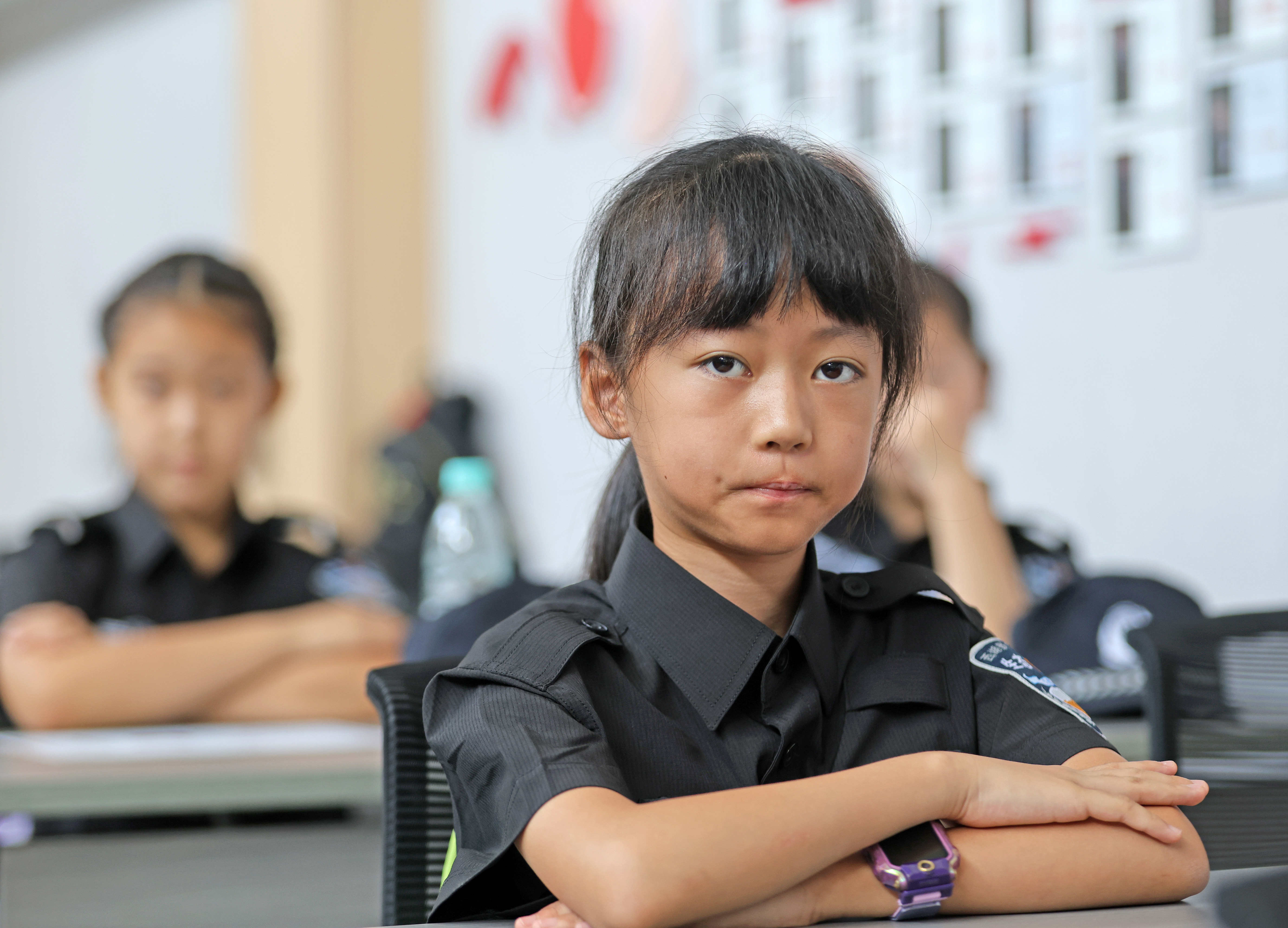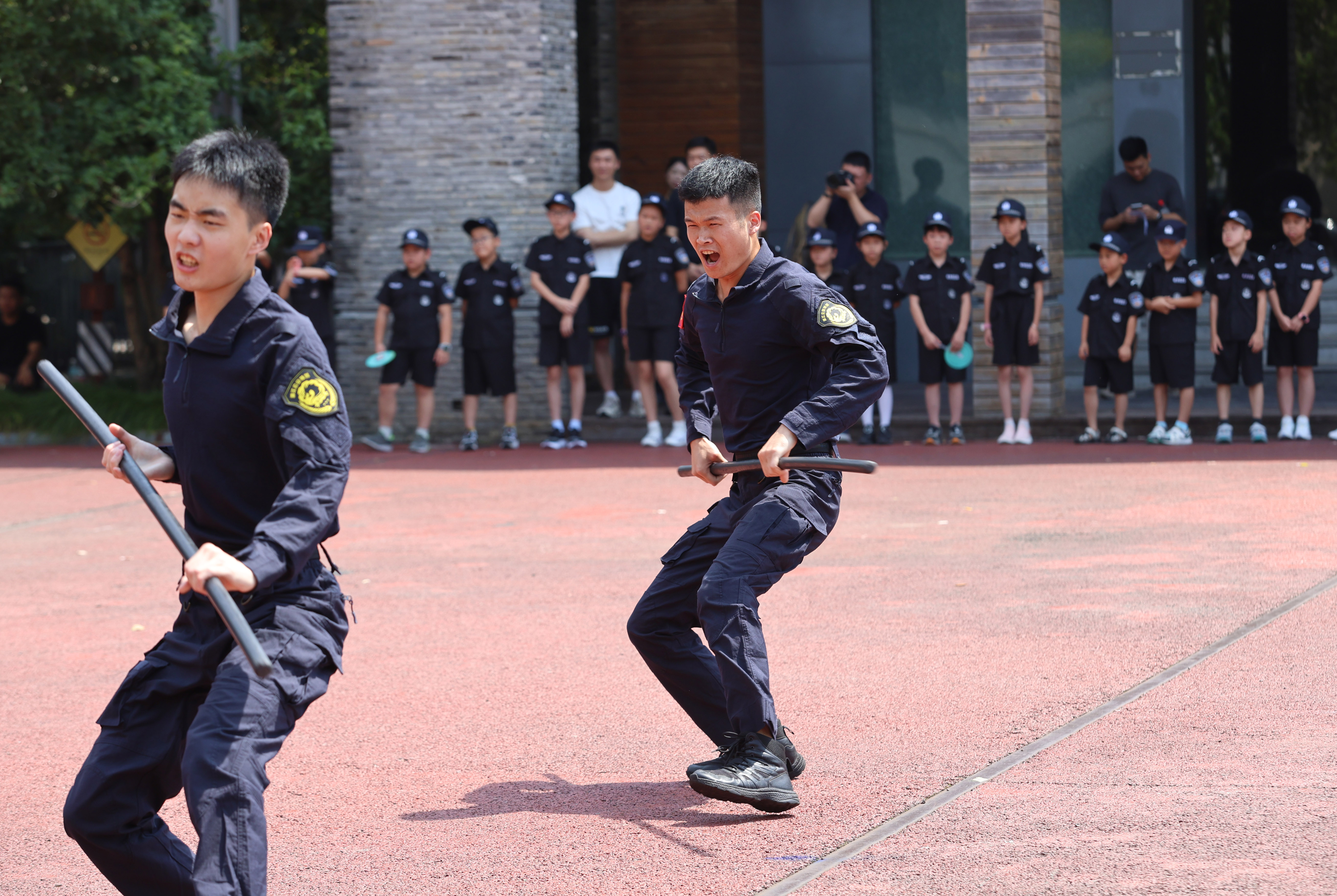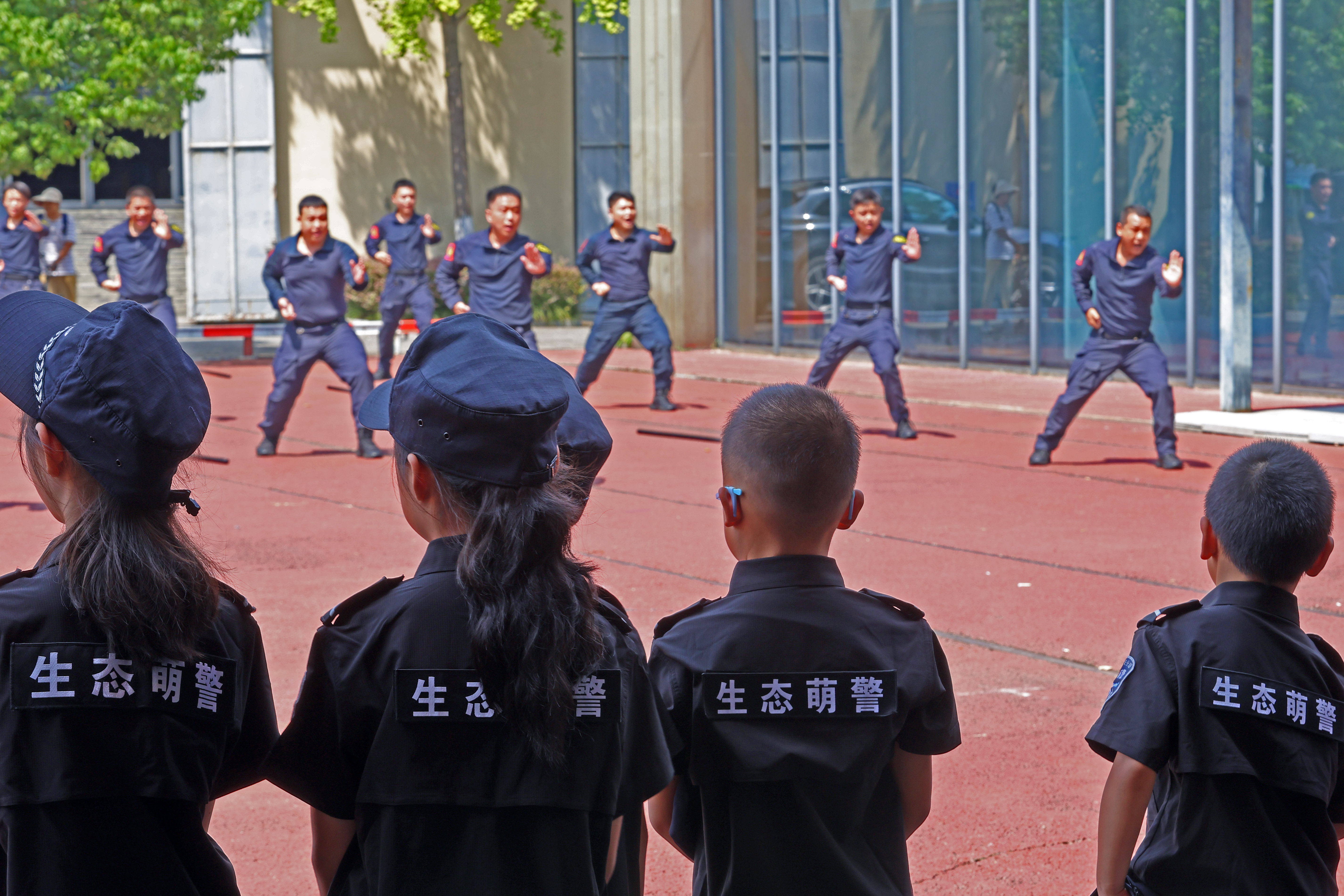 在这大热天里,看着民警叔叔们顶着烈日开展各项训练,孩子们切身感受到了父母工作的辛苦。