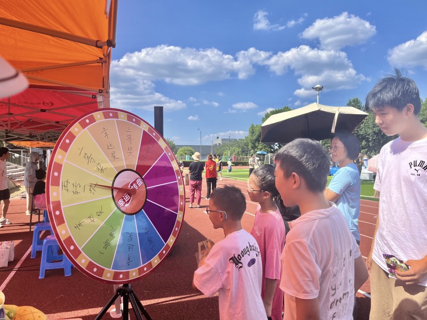 走进活动现场,四大区域各有精彩。水上闯关区里,水花与笑声齐飞,孩子们在清凉中释放活力,不分彼此地追逐嬉戏,正是社院融合中“无界陪伴”的真实写照;互动游戏区前,套圈、投壶、保卫萝卜等经典项目排起长队,院内外孩子并肩作战、分享技巧,小小的游戏桌成了情感联结的纽带;童行市集里,“小掌柜”们热情叫卖着亲手制作的工艺品,既有福利院孩子的巧思,也有社区儿童的创意,买卖之间流转的不仅是物件,更是不同成长环境里孩子们的相互理解;乐享时光舞台上,爱心乐队的悠扬旋律回荡,音符里盛满社会各界的关爱,也唱出了“开门办院”让温暖流动的协奏曲。