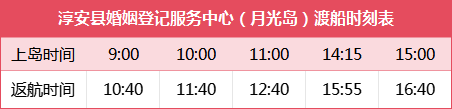 淳安县婚姻登记服务中心(月光岛)渡船时刻表