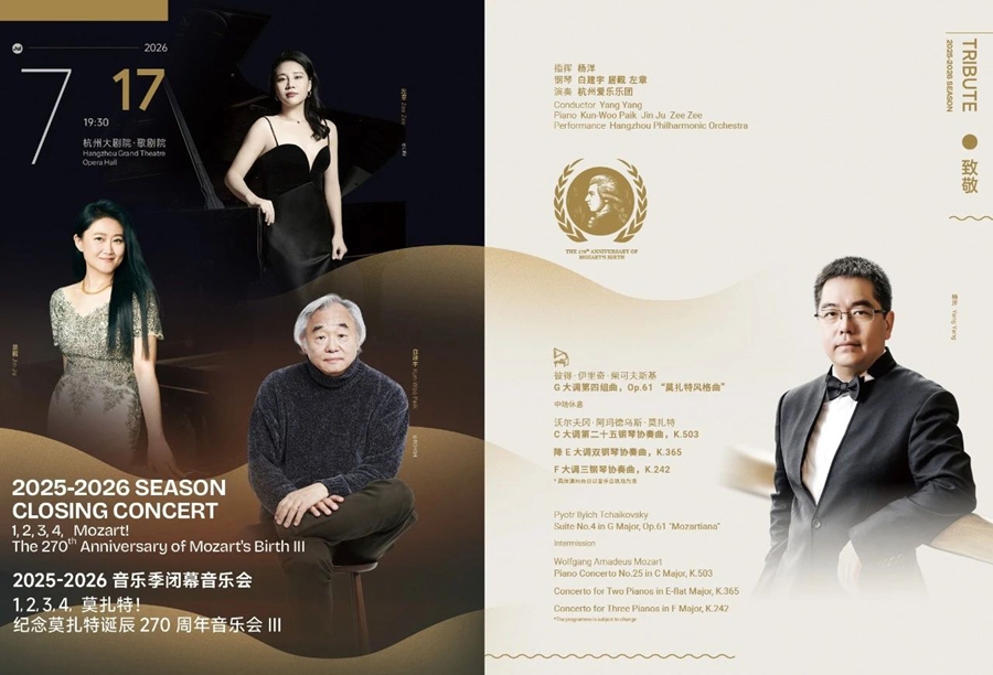 为纪念莫扎特诞辰270周年,三场专题音乐会贯穿全季:指挥家兼钢琴家李坚将以纯粹的古典语汇,还原莫扎特旋律中的典雅之光;青年指挥家孙一凡执棒室内乐音乐会,以轻盈织体演绎《嬉游曲》的灵动与欢愉;乐季闭幕之夜,艺术总监杨洋将携手钢琴家白建宇、居觐、左章,联袂献上一场“钢琴协奏曲马拉松”,在莫扎特三大钢琴协奏曲的交相辉映中,奏响天才的不朽回响。