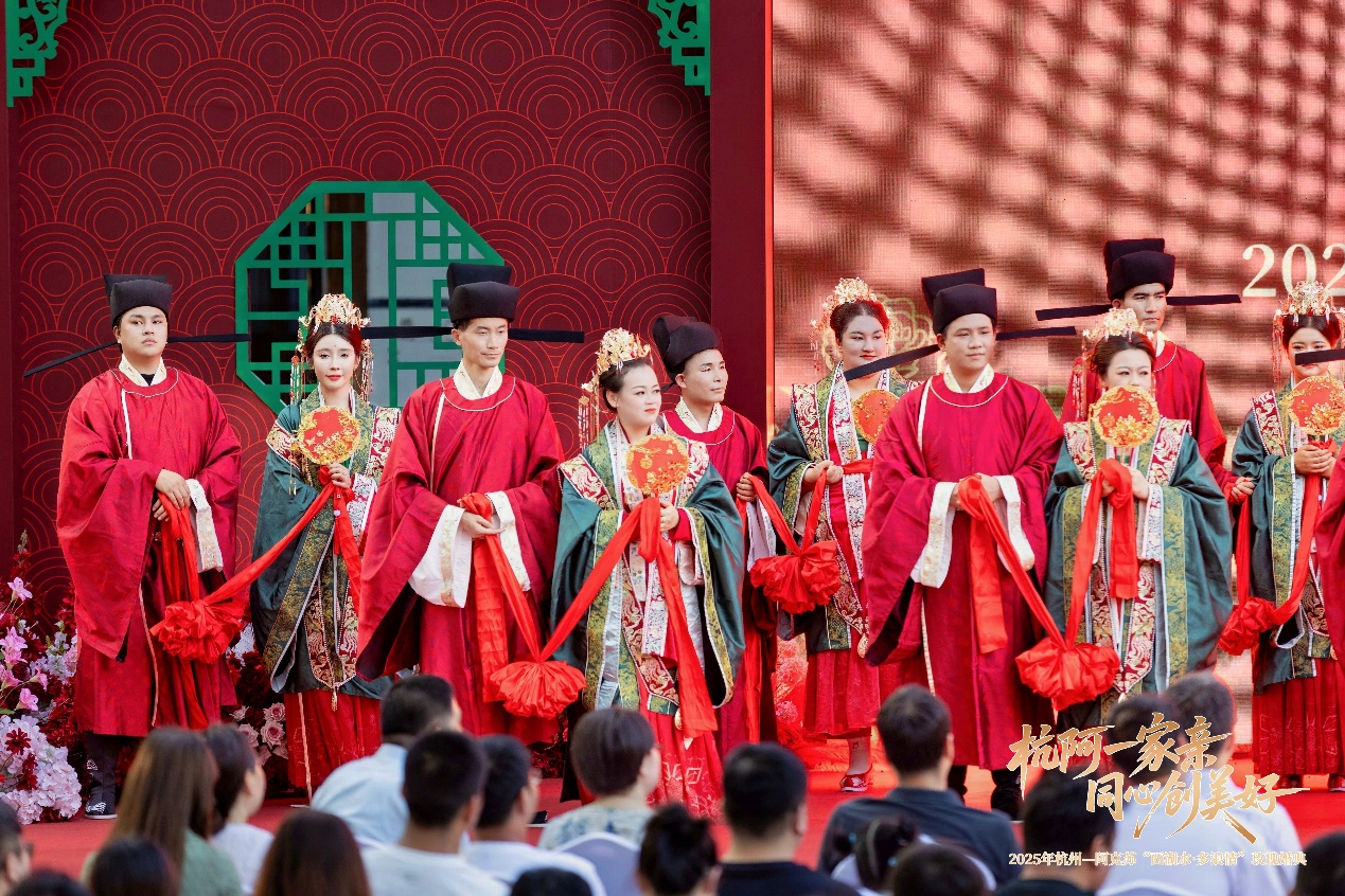 杭阿一家亲,同心创美好。主办方工作人员表示:“今年‘玫瑰婚典’以七夕为约,不仅传承中华优秀传统节日文化,更是新时代背景下杭阿青年心手相牵、交流交融、携手并进的生动体现。”工作人员介绍,像今日这样的两地青年集体婚礼已连续四年举办,这一品牌活动持续为两地新人打造难忘时刻,成为深化杭阿交流合作、促进民族交往交流交融的闪亮名片。