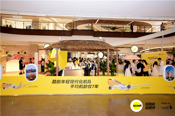 8月29日至31日,时值杭州-新加坡航线开通运营十周年之际,新加坡航空集团旗下的低成本子公司酷航(Scoot)在杭州嘉里中心举办了「酷飞一夏·多点滋味,酷‘杭’夏日特饮站」限时快闪活动,带来一场融合旅行灵感与味蕾体验的沉浸式线下体验。