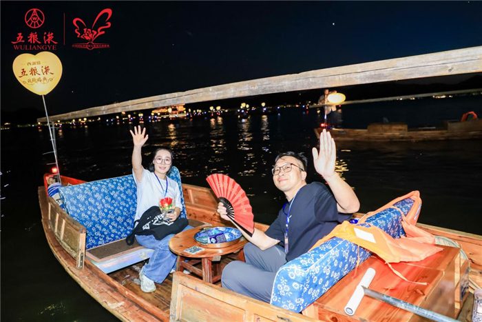 随后,77对有情人登上被誉为“西湖第一胜境”的三潭印月,开启诗酒趁年华的奇妙之旅。在岛上,有情人们体验宋韵文化的趣味互动,体会古人以诗酒会客的千年浪漫。