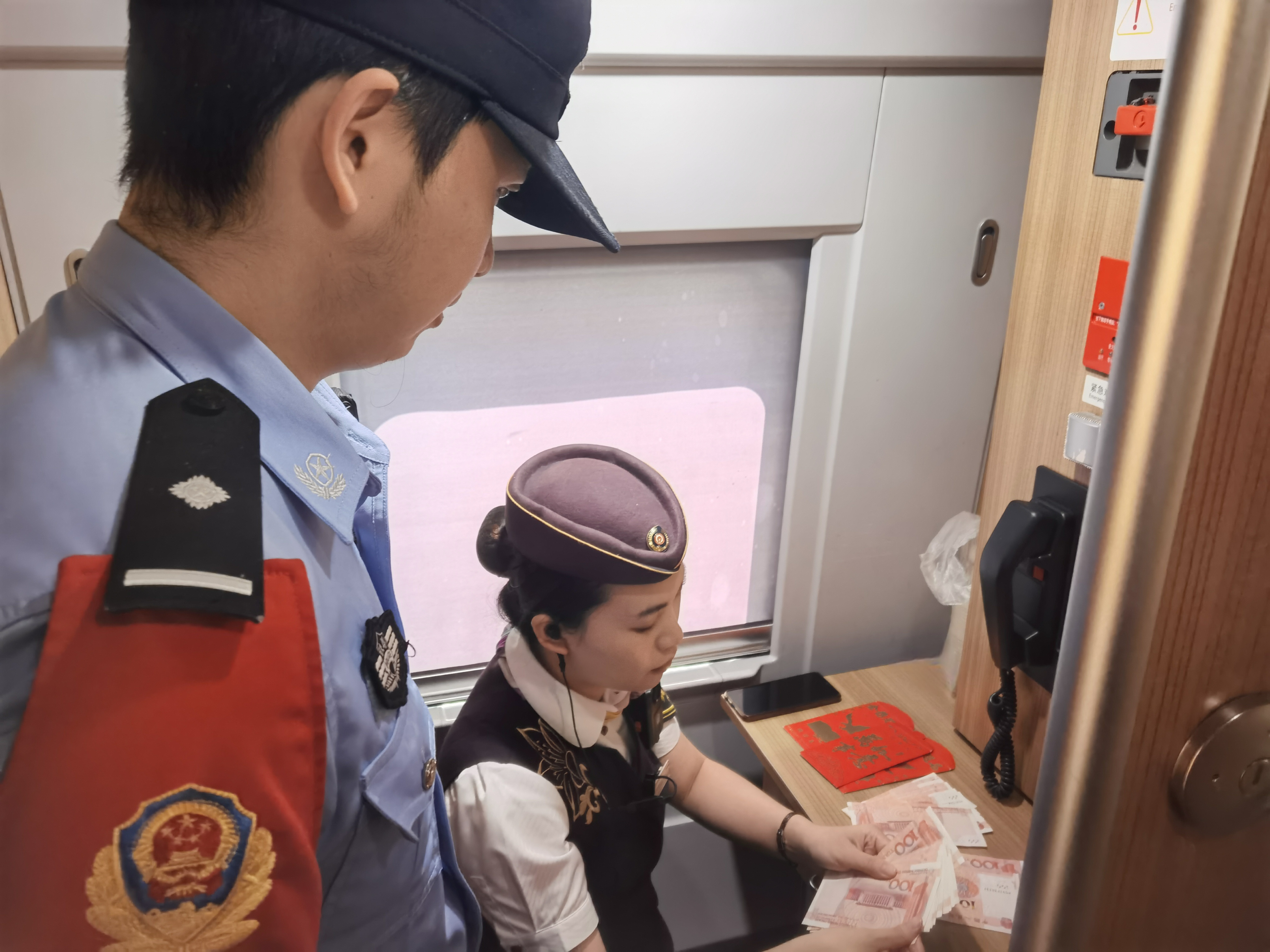 8月30日,C3673次列车缓缓停靠黄山北站。乘警王杰与列车长陈西墨在列车终到后开展巡视工作,在3号车厢的行李架上发现一个被遗落的黑色单肩包。打开一看,里面竟整齐叠放着多个印有“金榜题名”字样的现金红包。经现场清点,包内共有现金3000元整——这很可能是一位刚踏入高校的新生随身携带的“心意与希望”。