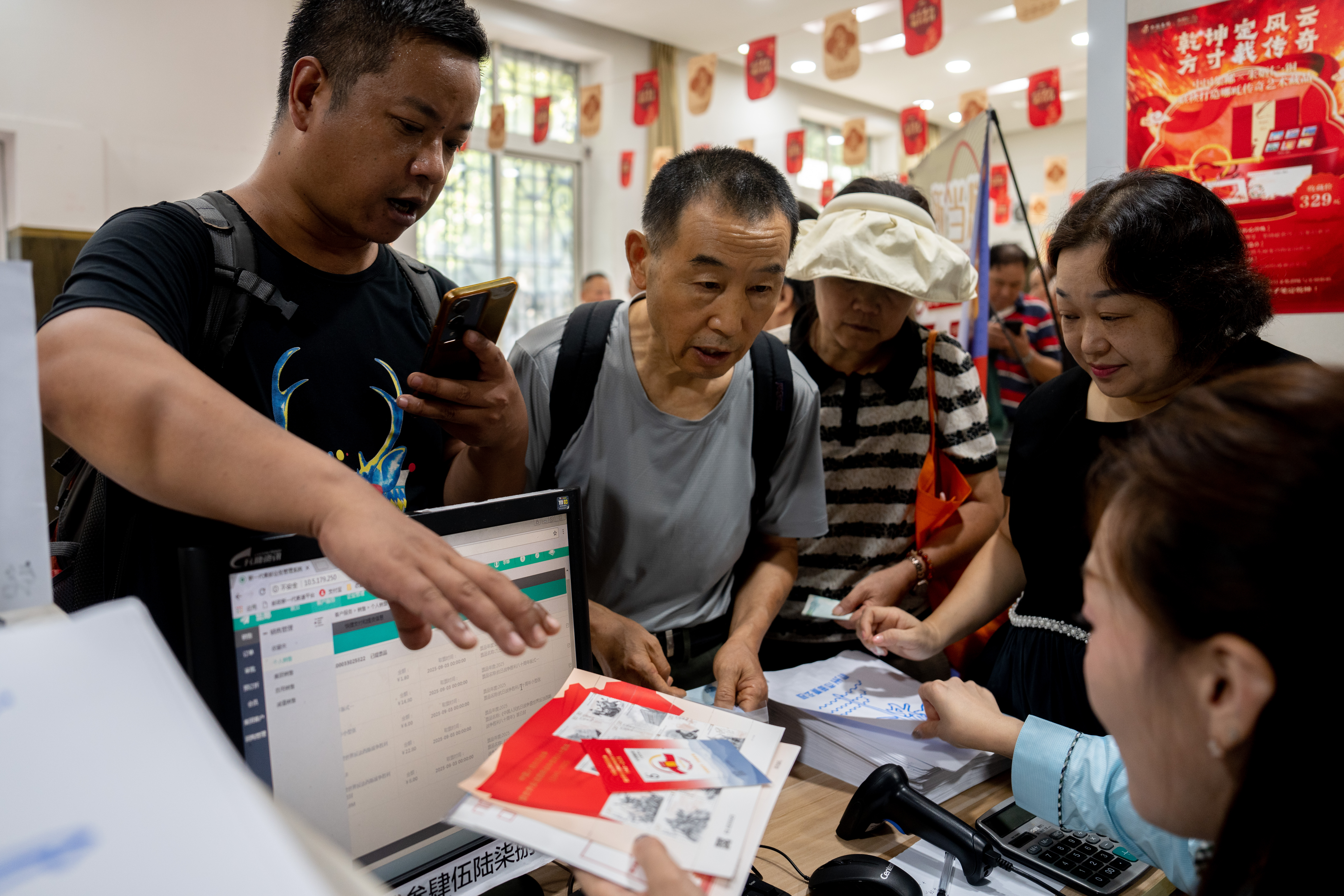 9月3日上午,中国邮政发行的《中国人民抗日战争暨世界反法西斯战争胜利八十周年》纪念邮票在杭州同步发售,吸引了不少市民朋友前往排队购买。