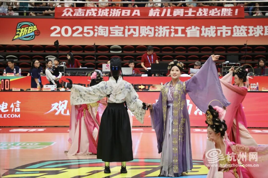 作为民间赛事,浙BA不仅是篮球的较量,还是一场视听盛宴。比赛节间休息时有多个精彩节目上演:杭州市文化广电旅游局带来了重磅推荐歌曲《浙BA(霸气)》,点燃全场激情;《今夕翩鸿·赛庭芳华》以宋韵舞姿演绎赛场风采;杭州艺术学校呈现器乐合奏《夜深沉》与舞蹈《江南四时舞》,融合国粹与江南风情,为激烈的赛事增添一抹艺术之美。