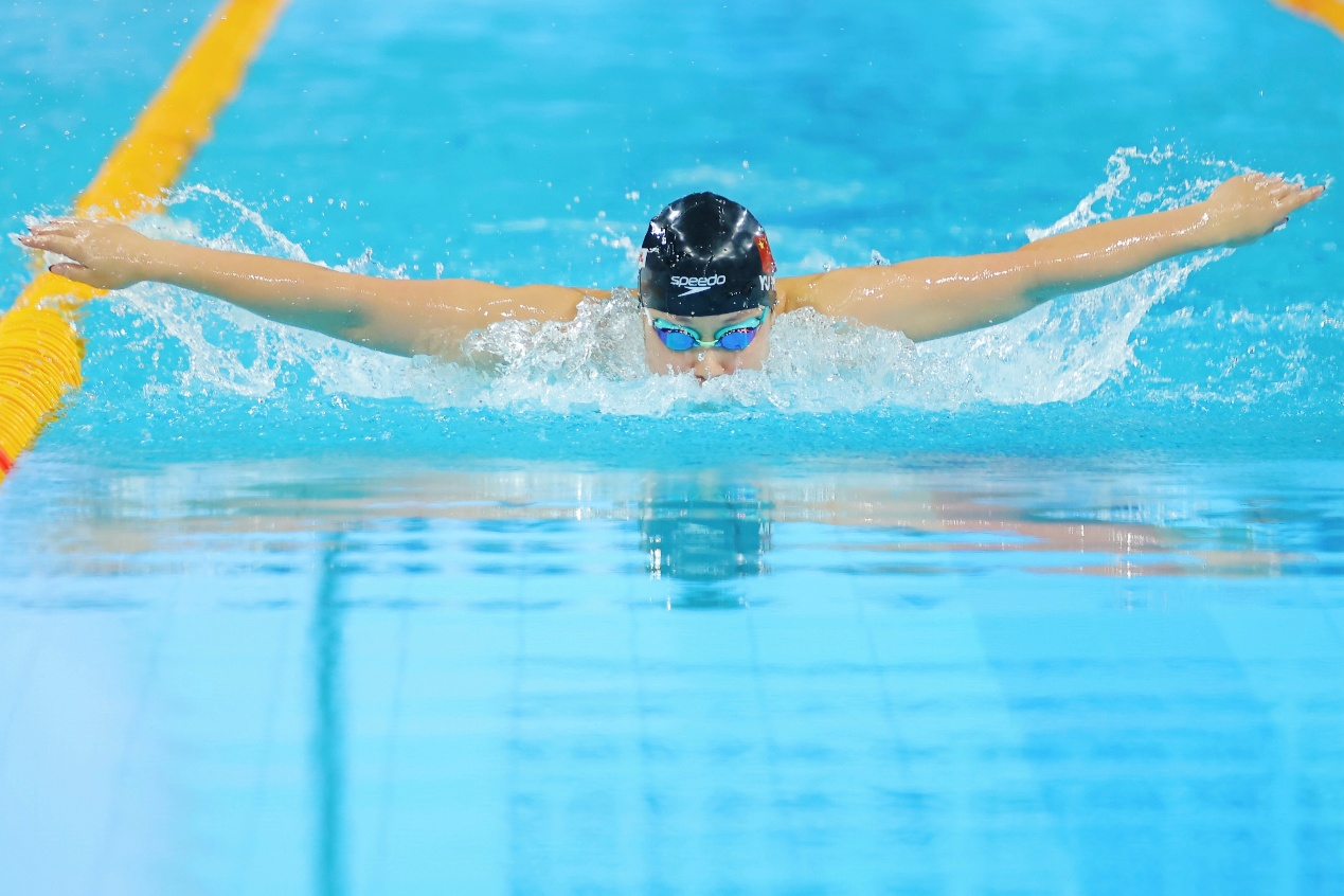 而第一次在全国大赛中尝试50米蝶泳的潘展乐,最终获得了第6名,23秒80的成绩让他两天三枪连续刷新个人PB,“还有待提高吧,第一次游50蝶还找不到感觉,以后有机会再来尝试。”由于该项目已经进入了奥运会,有记者问他未来是否会有所考虑,阿乐打趣道:“以后再说,还有3年,而且我50自都还没玩明白。”在该项目上,来自嘉兴海宁的沈加豪获得了亚军。