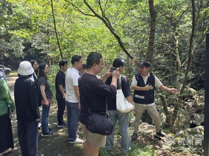 随后,采访团跟随生态义警——“钱江源卫士”的脚步,走进钱江源园区。通过观看展板并听取工作人员的介绍,实地了解“钱江源卫士”品牌的诞生由来与发展演变。