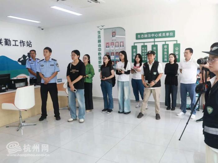 基层公安派出所如何坚持科技赋能,因地制宜、创新发展,积极履行好“+生态警务”职能,联动相关部门合力推动生态共治提档升级?跟随着副所长刘畅的脚步,采访团成员走进齐溪派出所里的钱江源生态融治中心一探究竟。