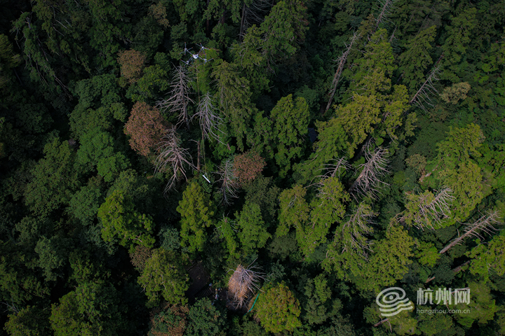 近年来,天目山管理局高度重视古木保护,通过落实“树长制”、安装避雷针、给古木“挂点滴”、定期除虫害等多种方式,悉心呵护古木。此次运用无人机助力保养维护工作,是古木保护手段的又一次创新。